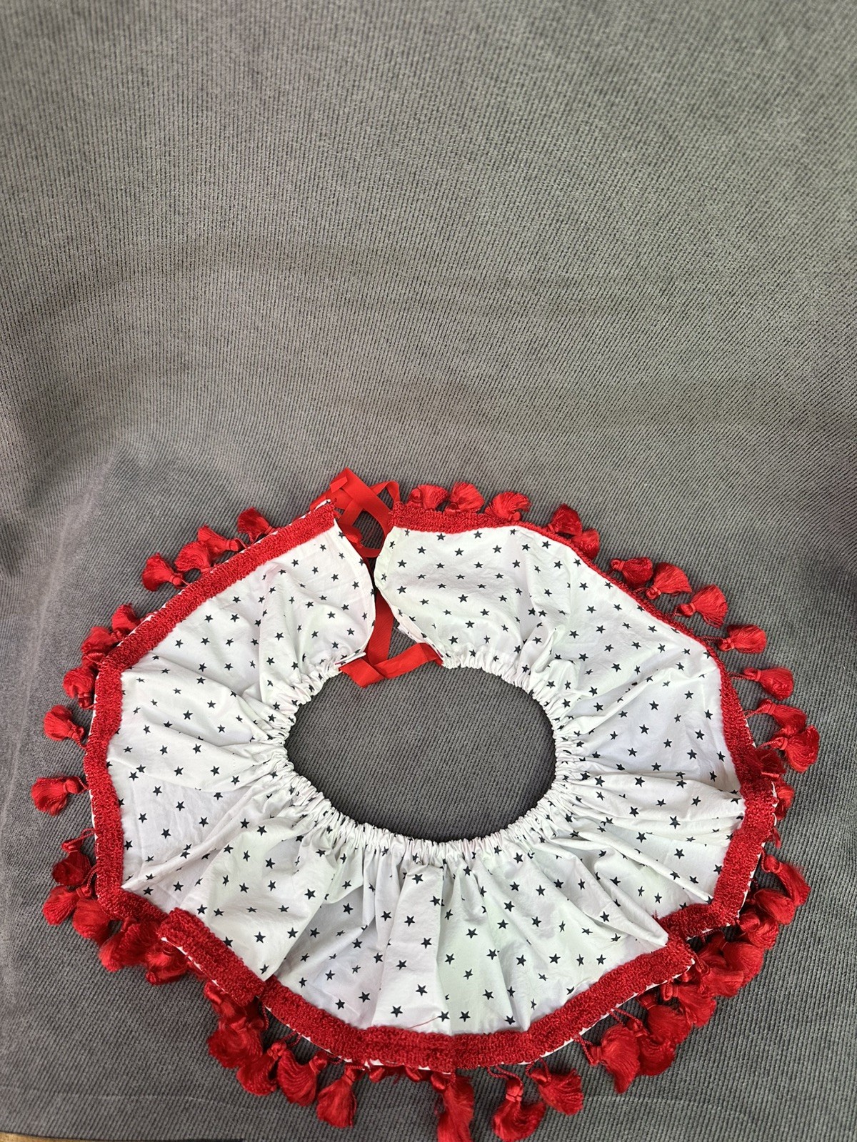 как выглядит Starry Pierrot Ruffle Clown Collar with Red Tassel Trim Patriotic фото