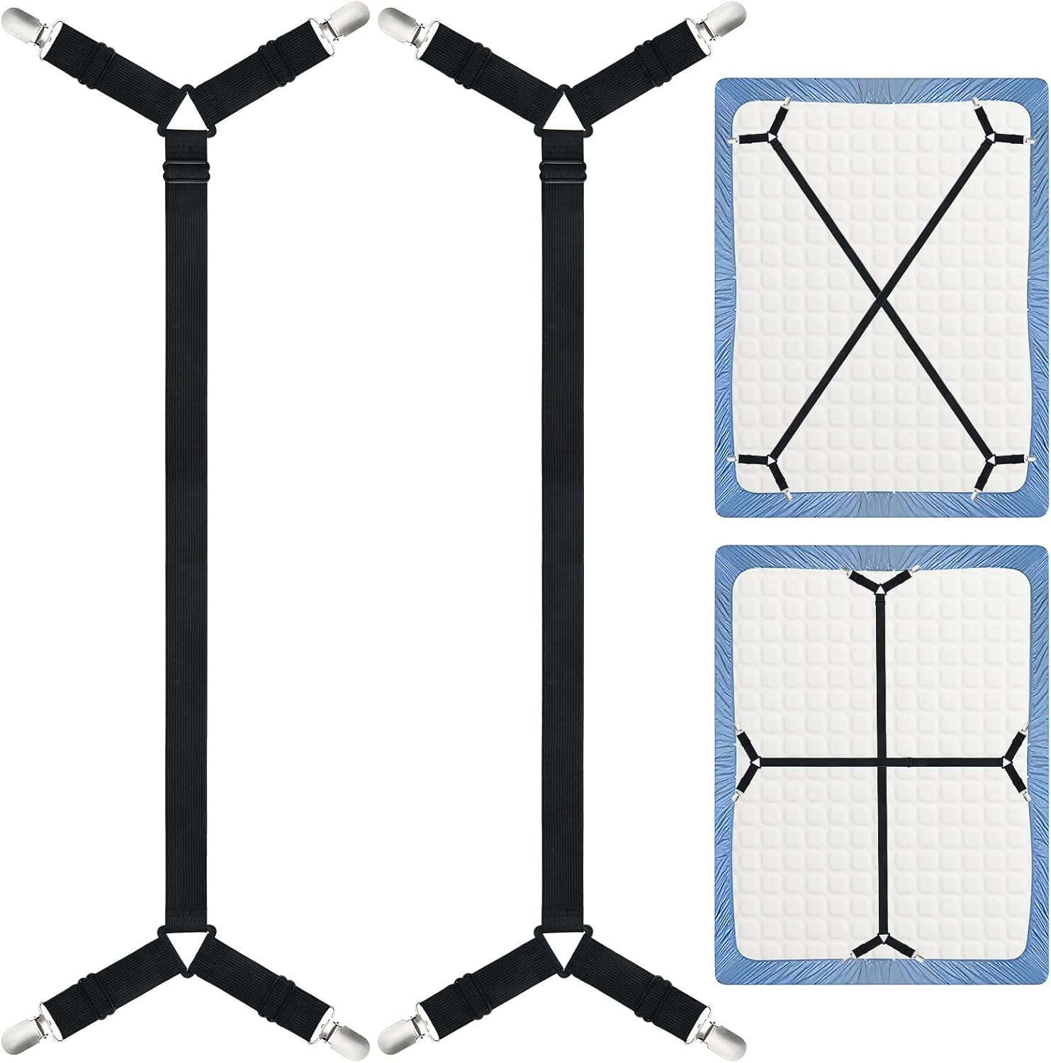 Bed Sheet Fasteners Straps Adjustable Bed Sheet Holder Bands with Sheet Clips fo