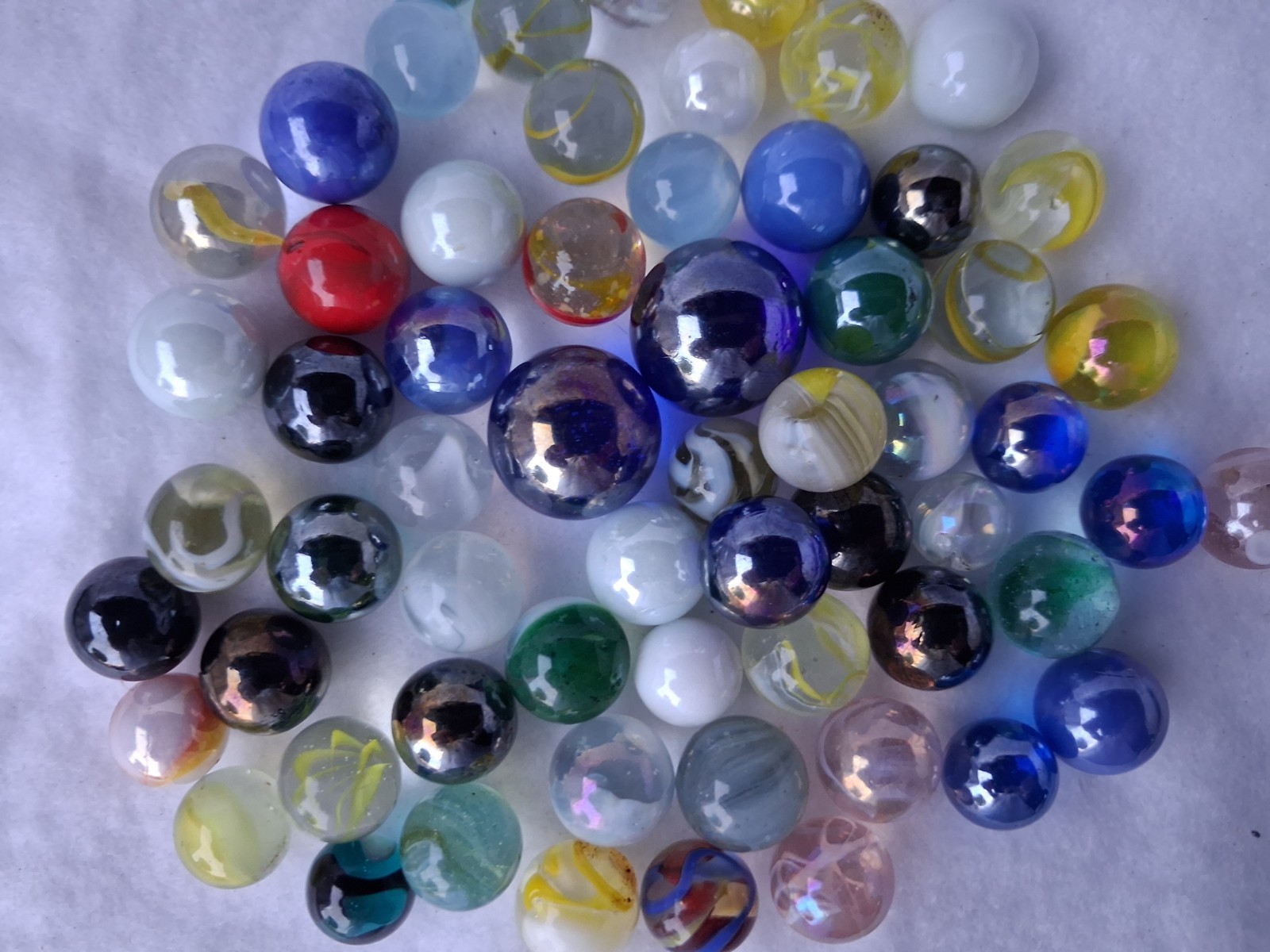 как выглядит Lot of 60 Mixed Glass Machine Made Toy Marbles Assorted Colors Patterns фото