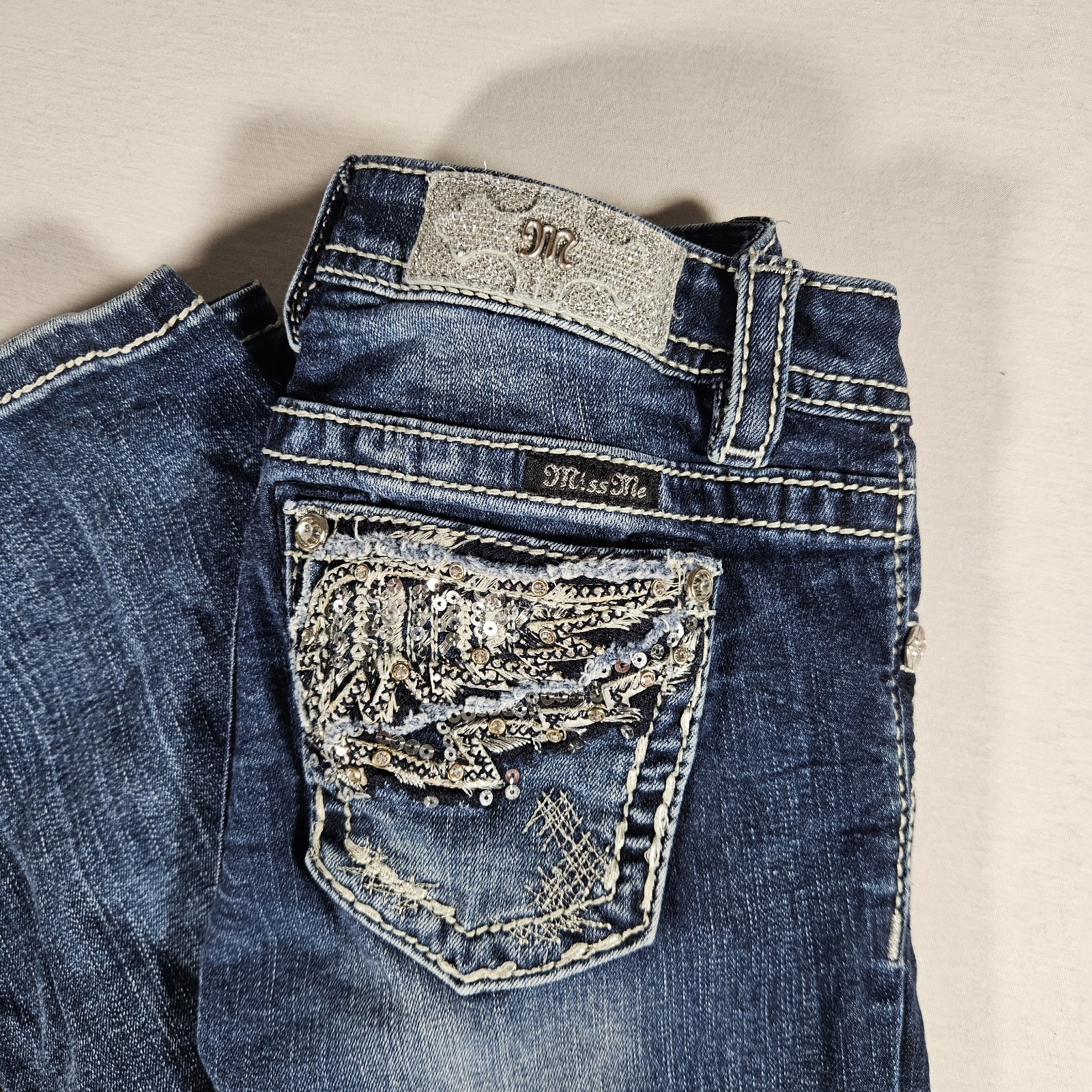 как выглядит Miss Me Jeans Womens Size 14 Boot Cut Embroidered Pocket Medium Wash фото