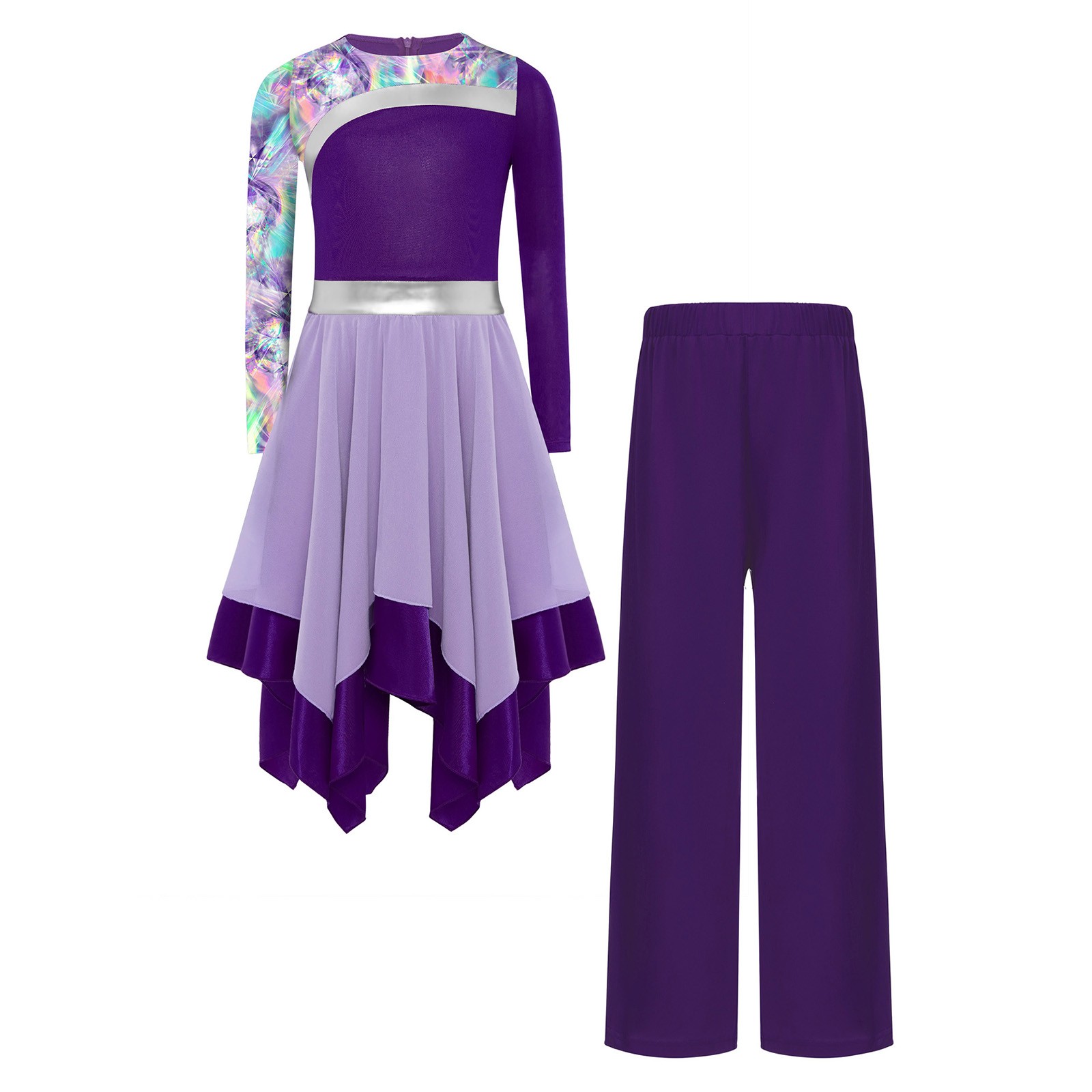как выглядит US YiZYiF Girls Worship Costume With Wide Leg Pants Lyrical Praise Dance Dress фото