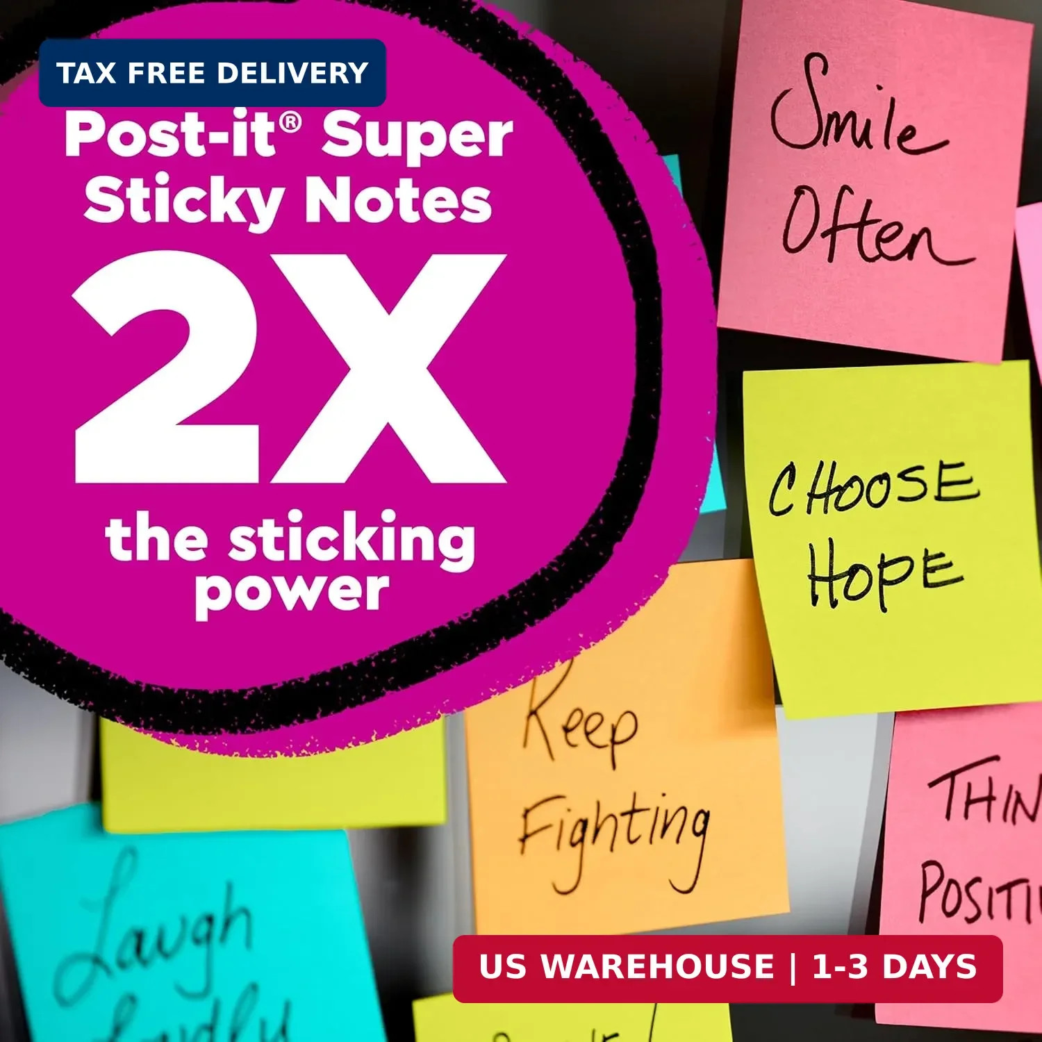 Super Sticky Full Adhesive Notes, 2x Sticking Power, 2 x 2 8 pads US