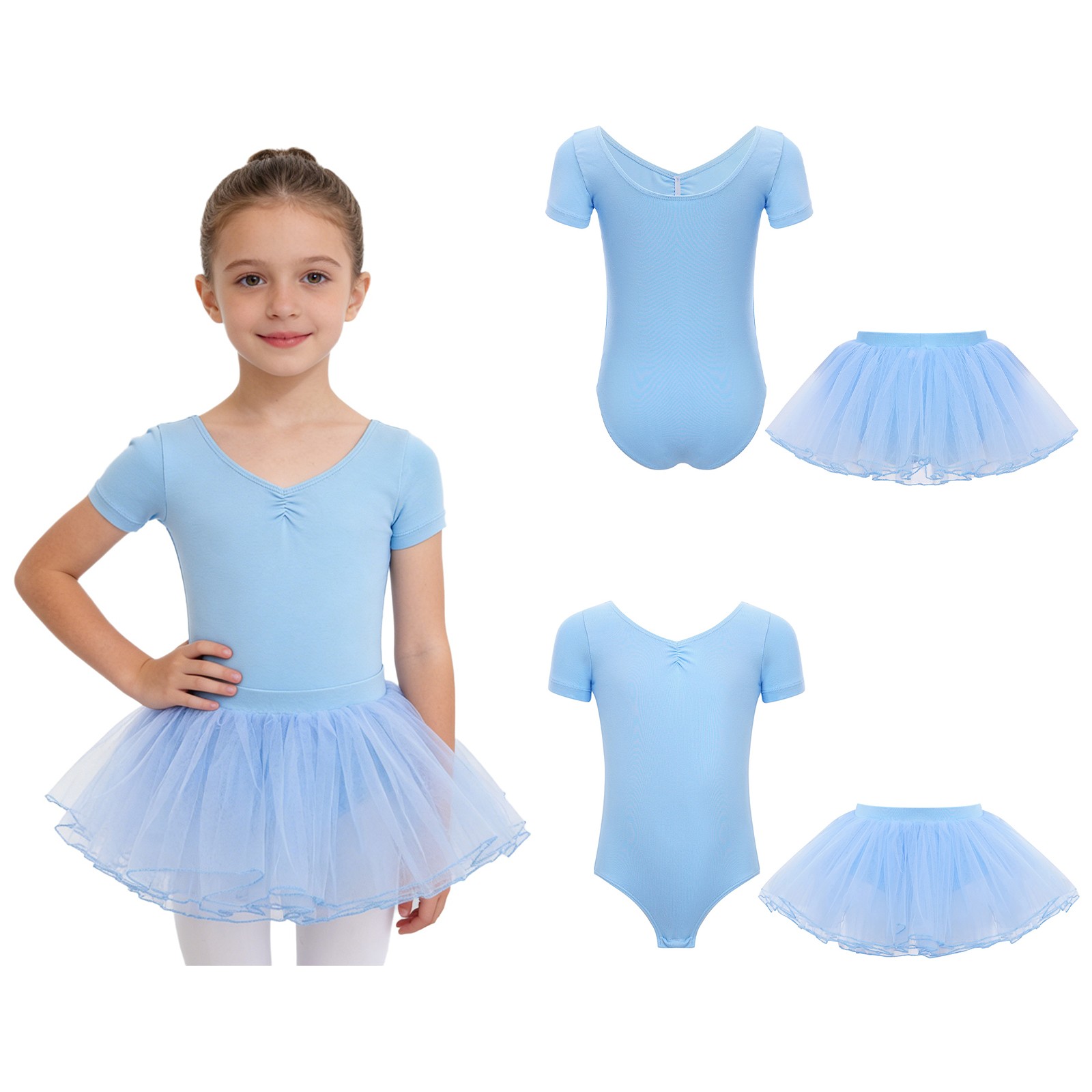 как выглядит Girls Dancewear Dress Up Ballet Leotard Press Button Tutu Skirt Gymnastic Stage фото