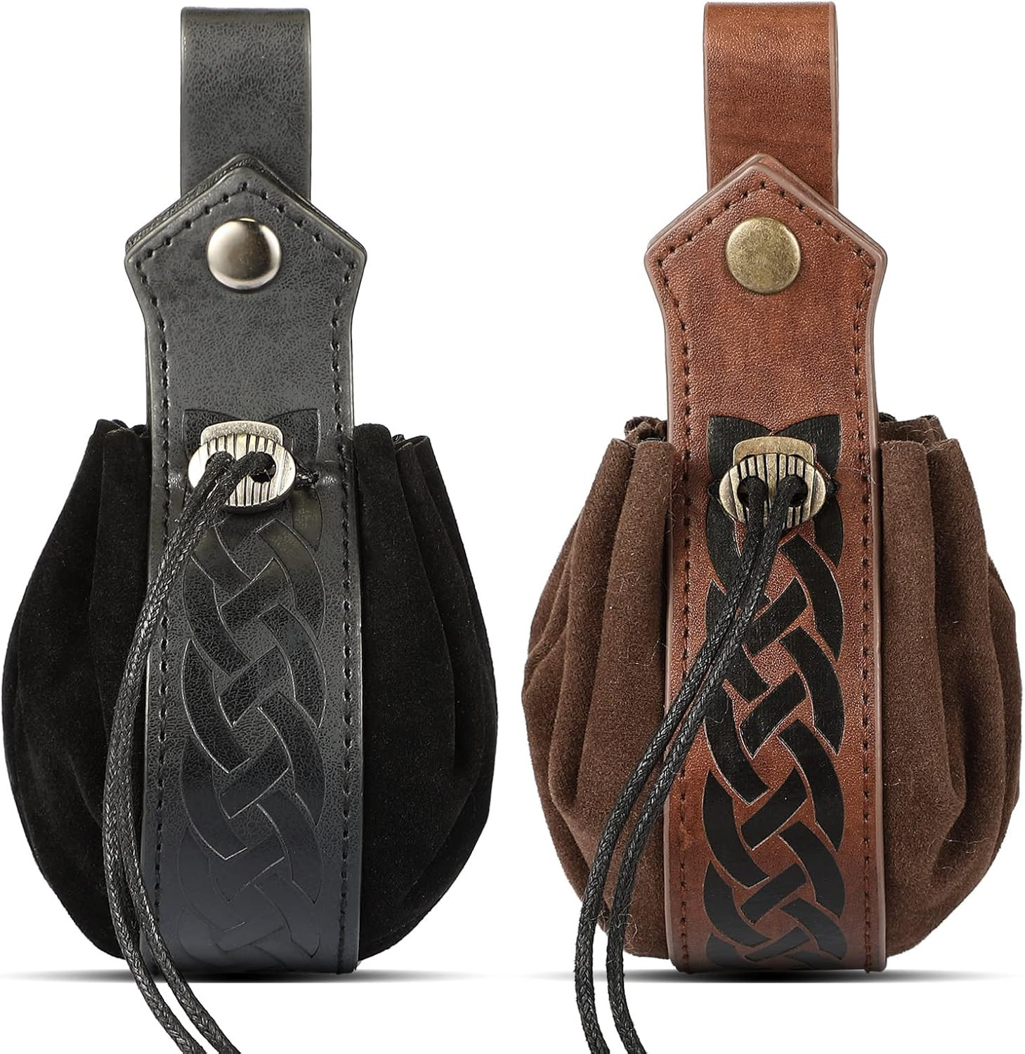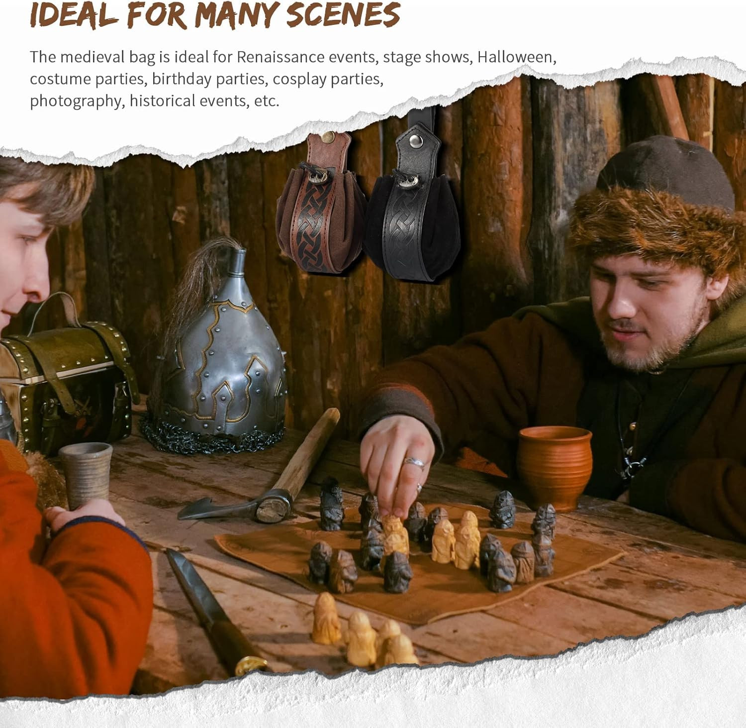 2 Pcs Medieval Faux Leather Pouch Portable Drawstring Purse Medieval Belt Pouch