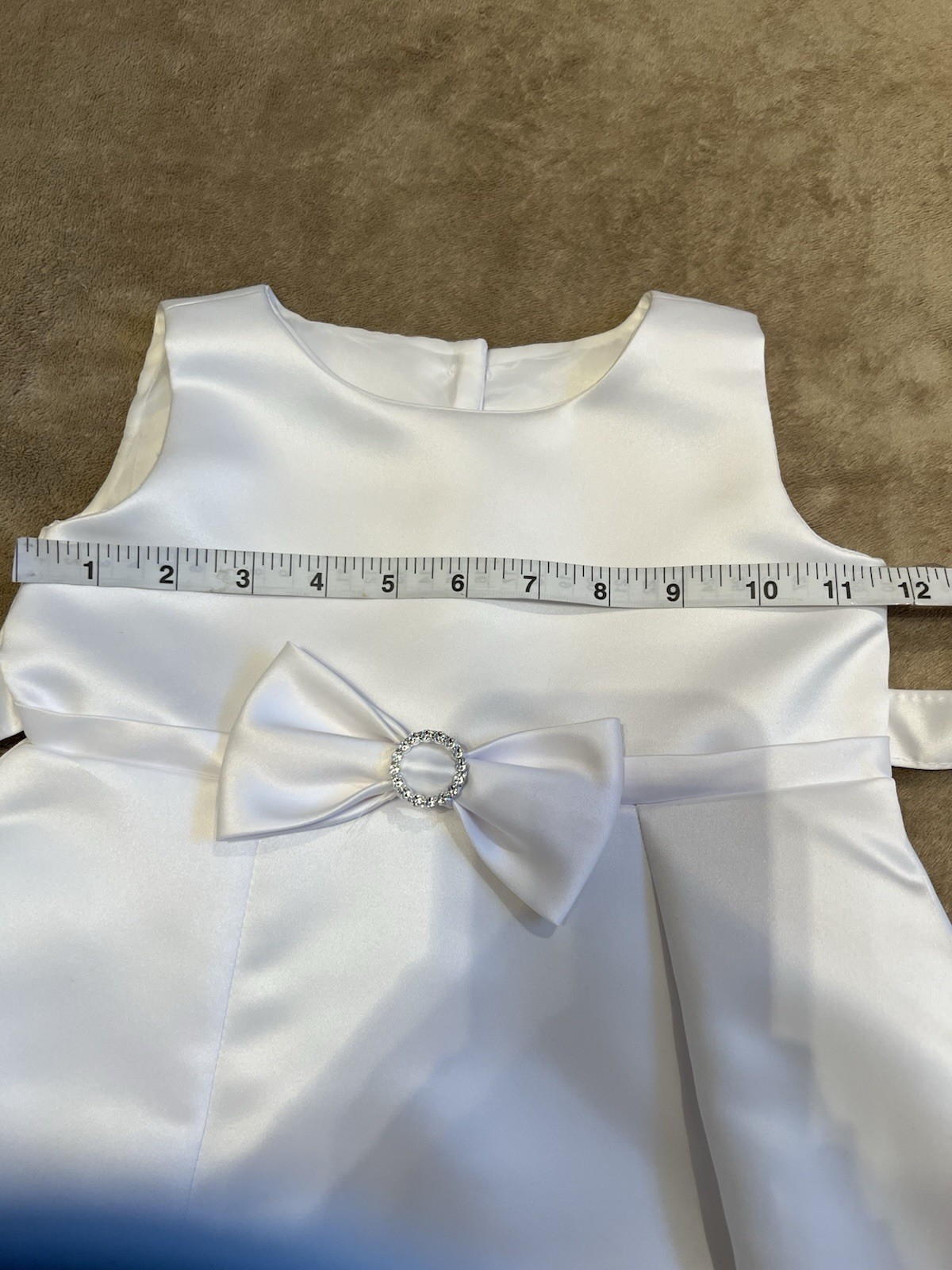 White Satin A-line Girls Communion Flower Girl Dress Ankle Length