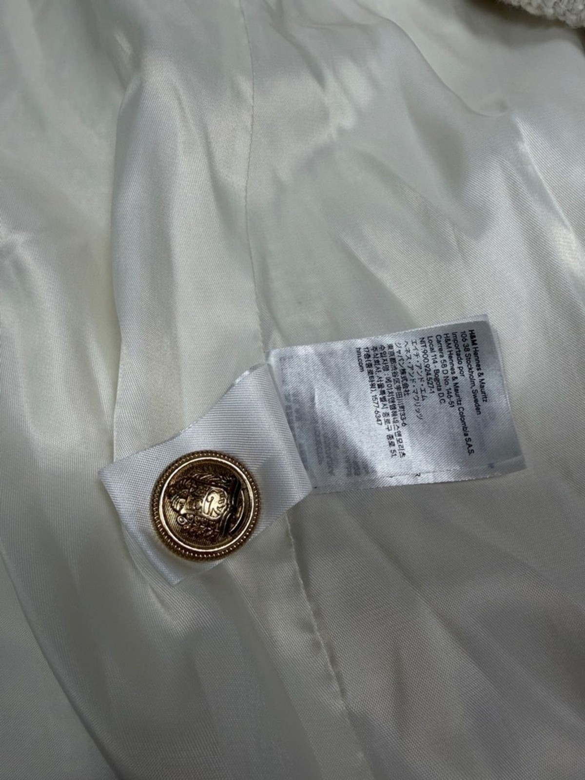 как выглядит H M Cream Tweed Blazer Double Breasted Gold Button Jacket Textured Chic XS фото