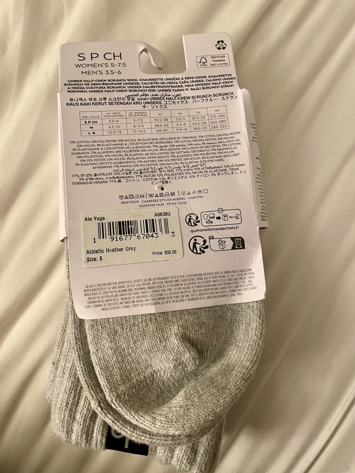 как выглядит ALO Unisex Half-Crew Scrunch Sock Light Grey S Ws 5-7/Ms 3.5-6 NEW фото