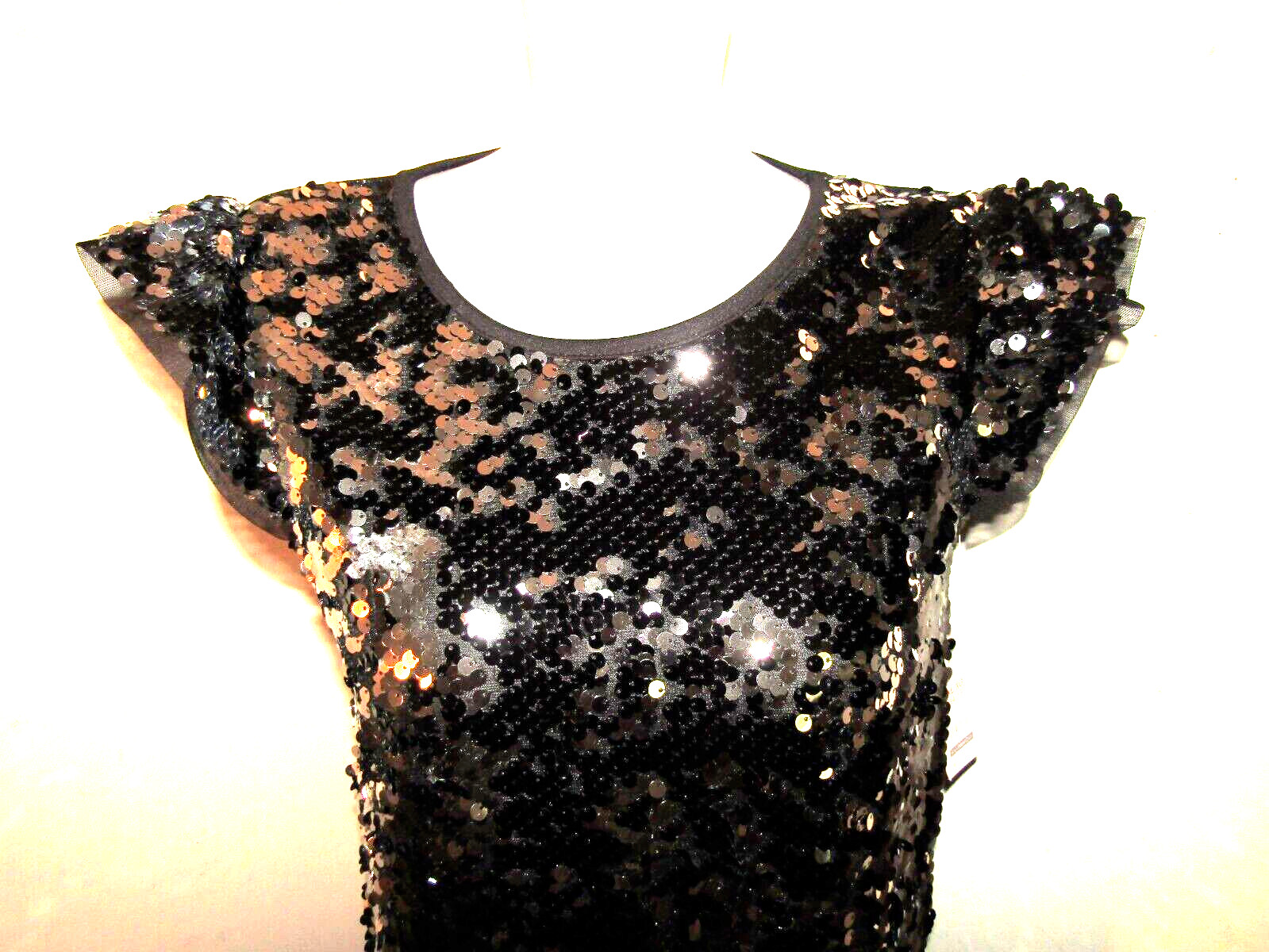 NWT, WONDER NATION Girls' XL 14-16, Black Silver Sequins Shift Dress, Cap Slvs