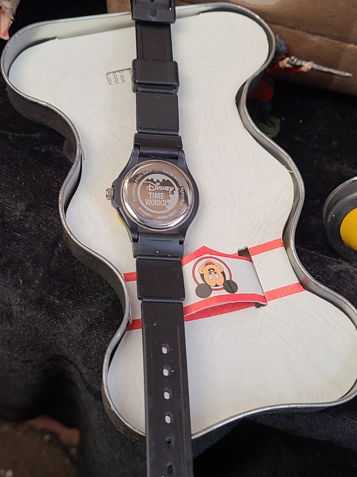 • Vintage Disney Time Works Yellow and Black Mickey Mouse Watch In Tin