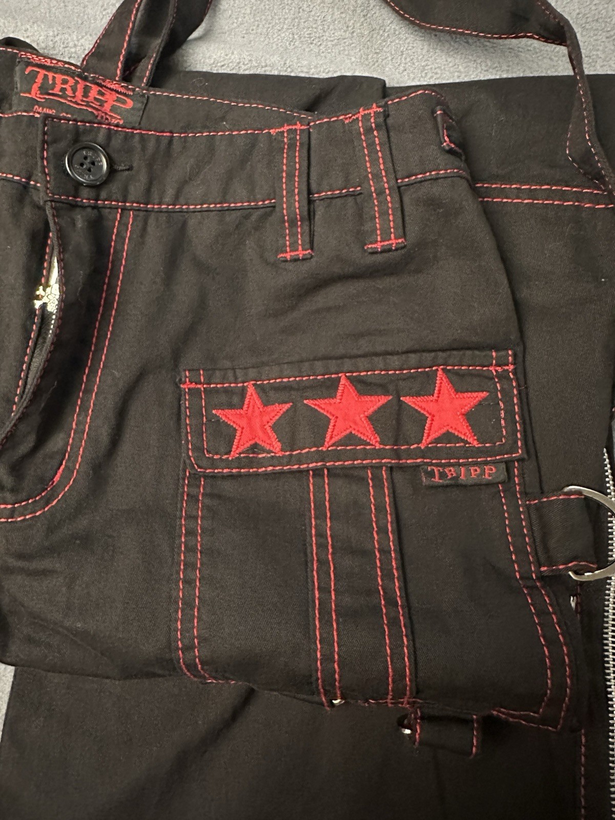 Y2K Tripp NYC Daang Goodman Black Bondage Pants Sz 11 Zippers Stars Flare Gothic