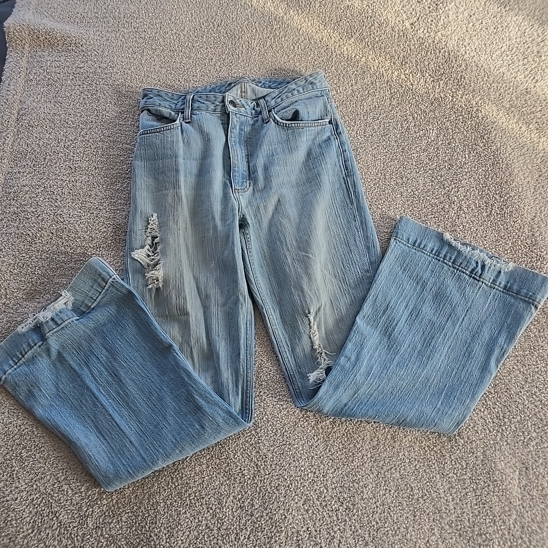 как выглядит Kimes Ranch Jennifer Womens Light Wash Distressed Bootcut Denim Jeans Size 8/32 фото