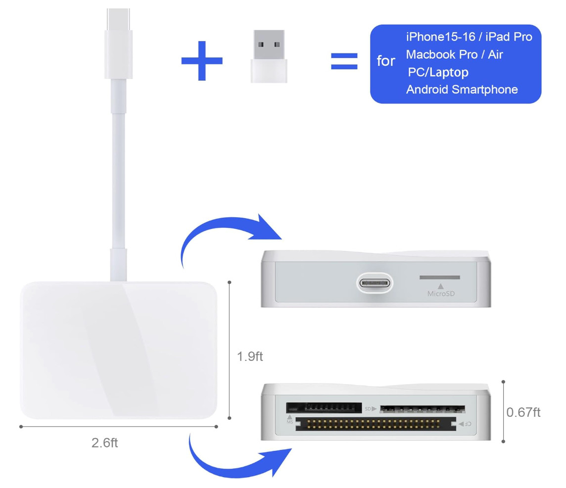 как выглядит SD Card Reader, 4 in 1 USB C to SD/TF/CF/MS Card Reader with USB to USB C Adapte фото