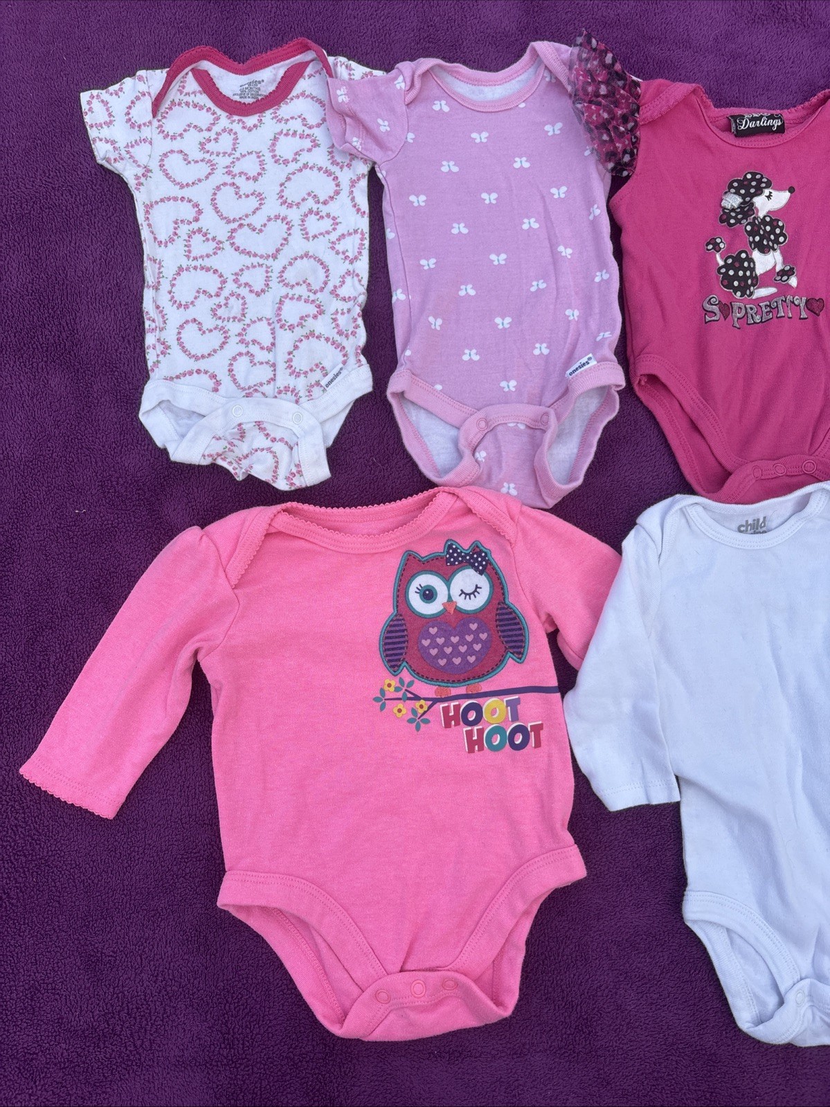Baby Girls Size 0-3 Months 7 Piece Bundle Shortsleeve Longsleeve Pants