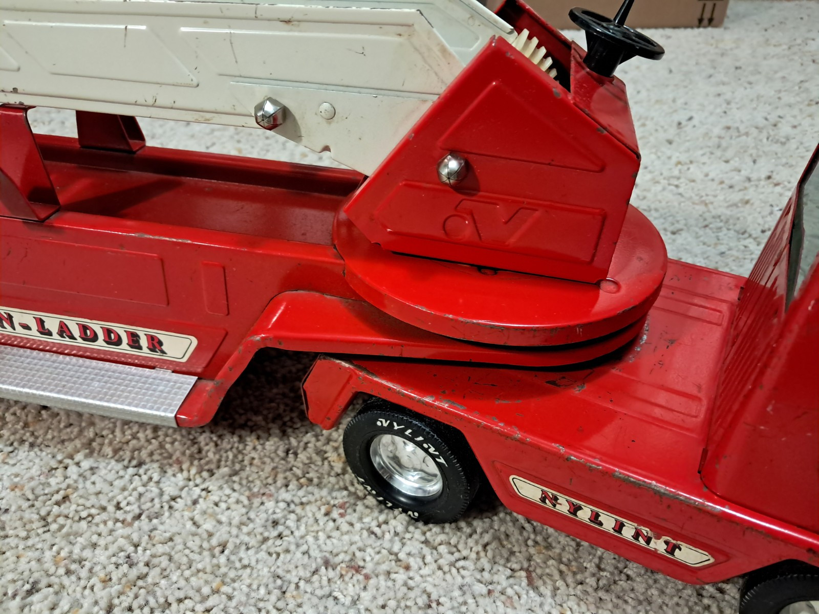 Vtg 1970's 30 Nylint Arial Hook-N- Ladder Fire Truck Toy Metal Steel