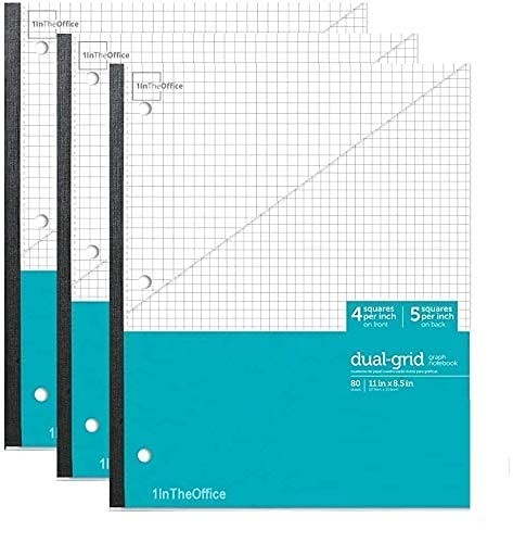 Graph Ruled Notebook 3 Pack - Teal Quad Ruled Graph Paper, 8.5 x 11 - Wireless
