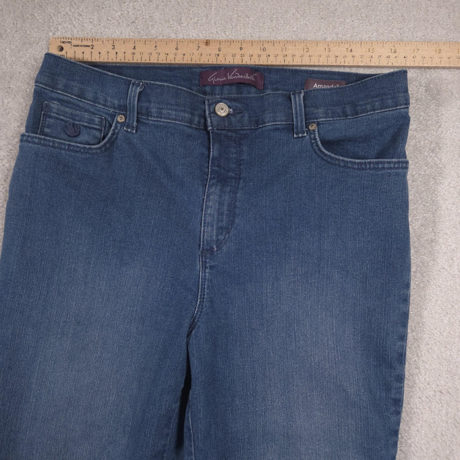 как выглядит Gloria Vanderbilt Amanda Jeans Womens 16P Short Blue High Rise Tapered Stretch фото