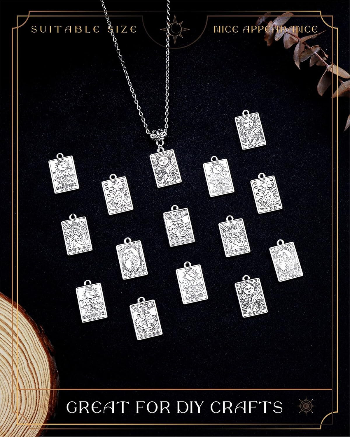 как выглядит 60 Pcs 6 Styles Tibetan Tarot Charms, Rectangle Amulet Sun Charms, Vintage Magic фото