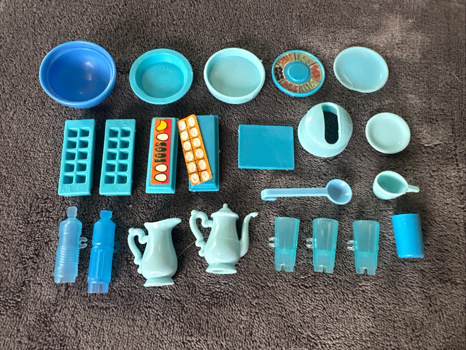 Barbie Play House Kitchen Blue Pots Pans 1980s Food Pitchers Cups