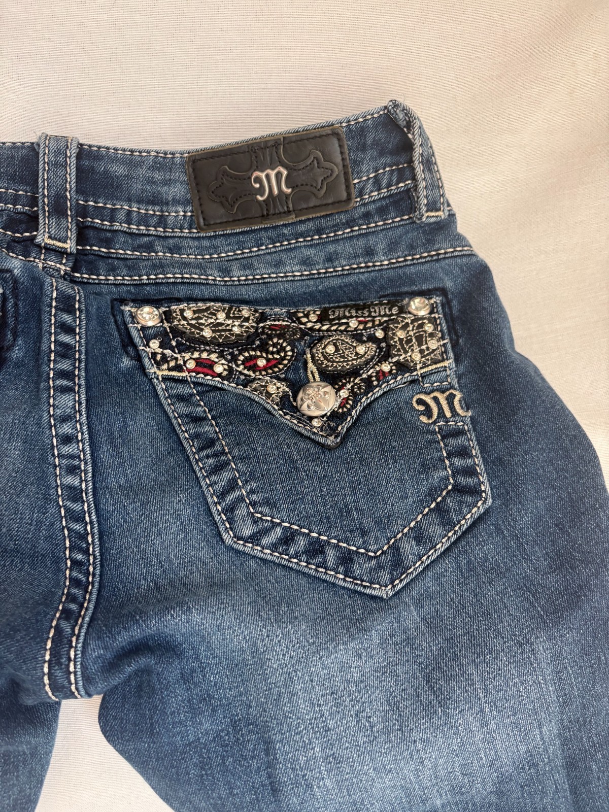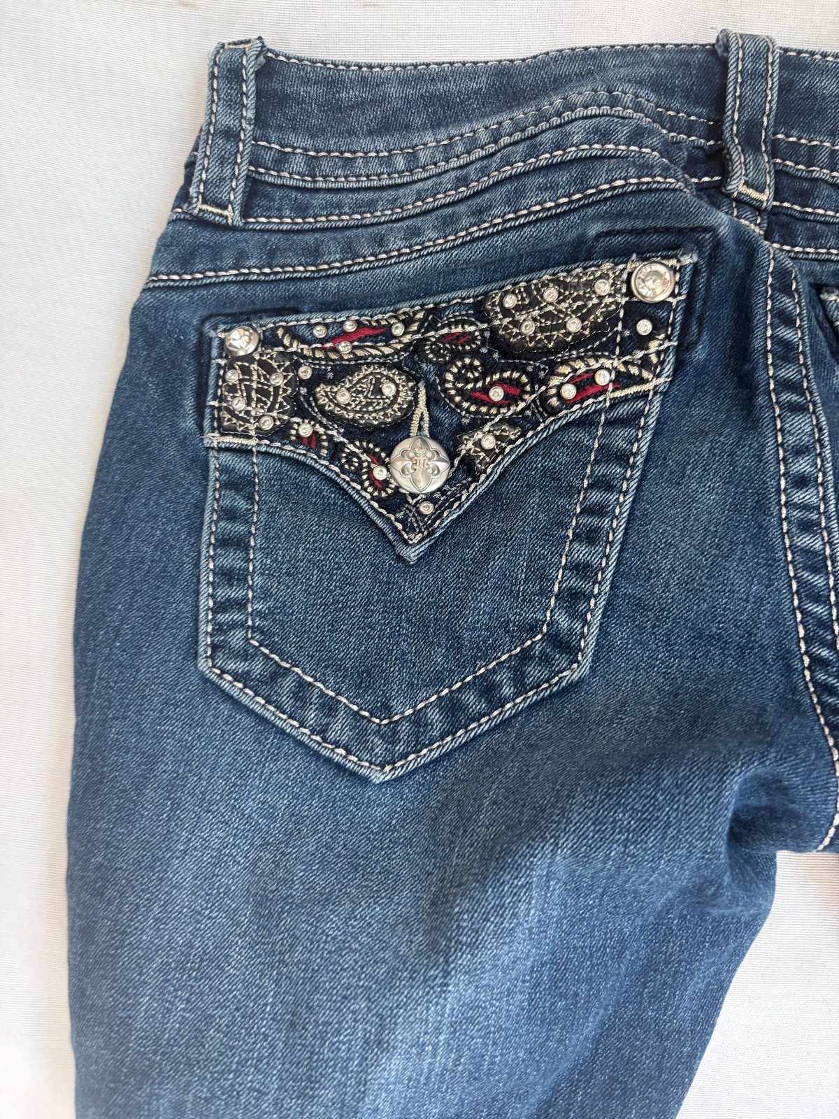 Miss Me Jeans Women 26 Signature Boot Cut Embellished Paisley Western Denim Blue