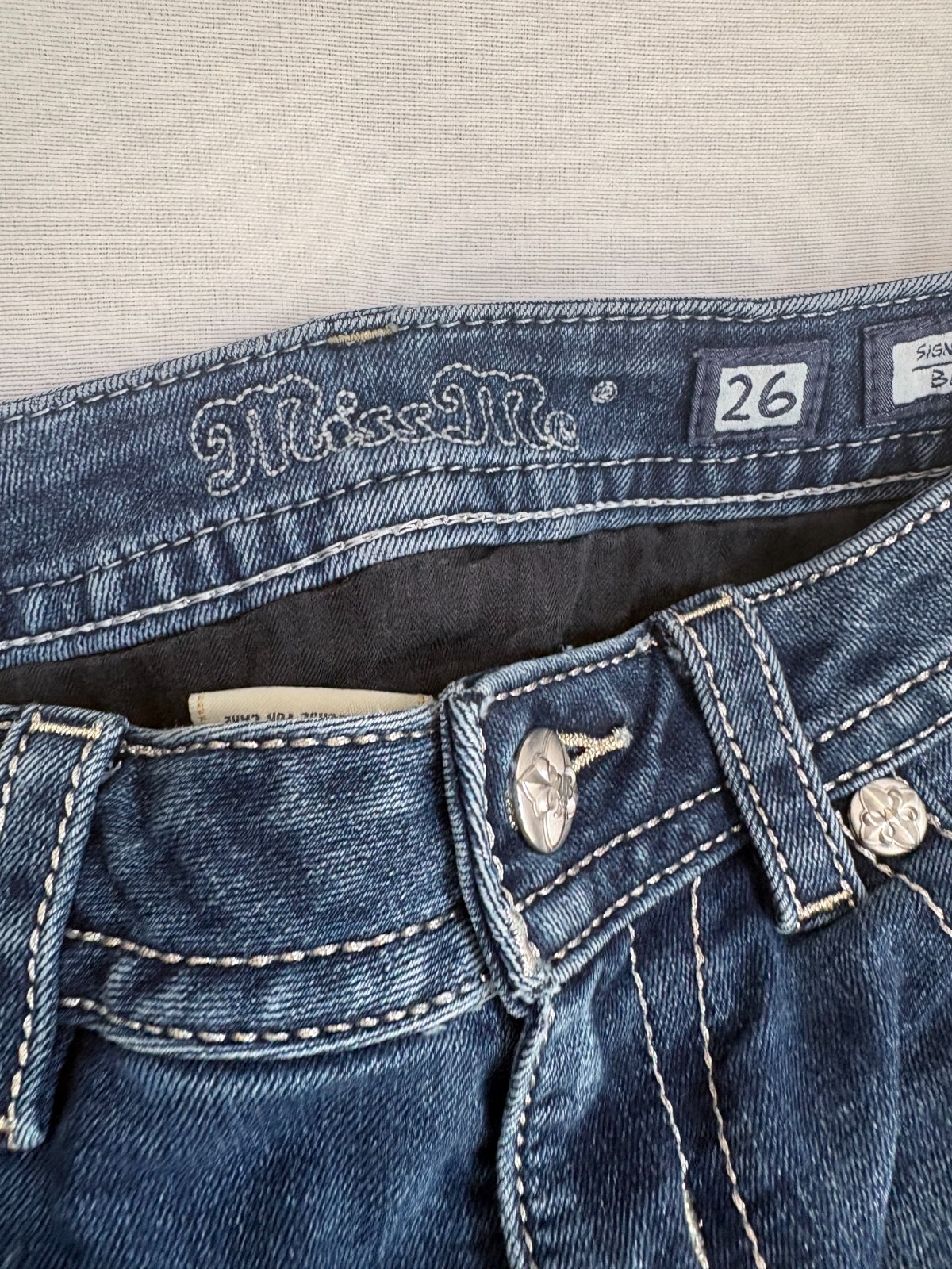 как выглядит Miss Me Jeans Women 26 Signature Boot Cut Embellished Paisley Western Denim Blue фото