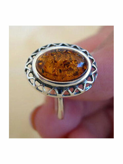 BALTIC GREEN or HONEY AMBER STERLING SILVER HANDMADE RING