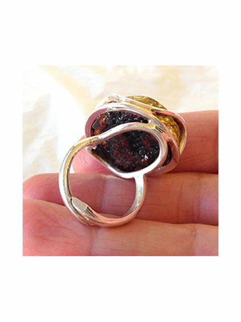 как выглядит BALTIC CHERRY HONEY or MULTICOLOR AMBER STERLING SILVER MODERN HANDMADE RING фото