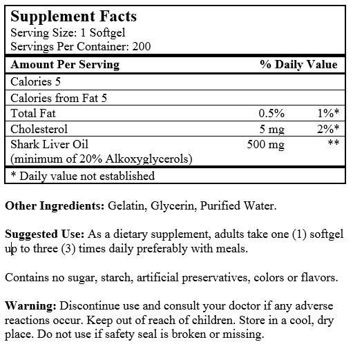 Ingredients: Shark Liver Oil