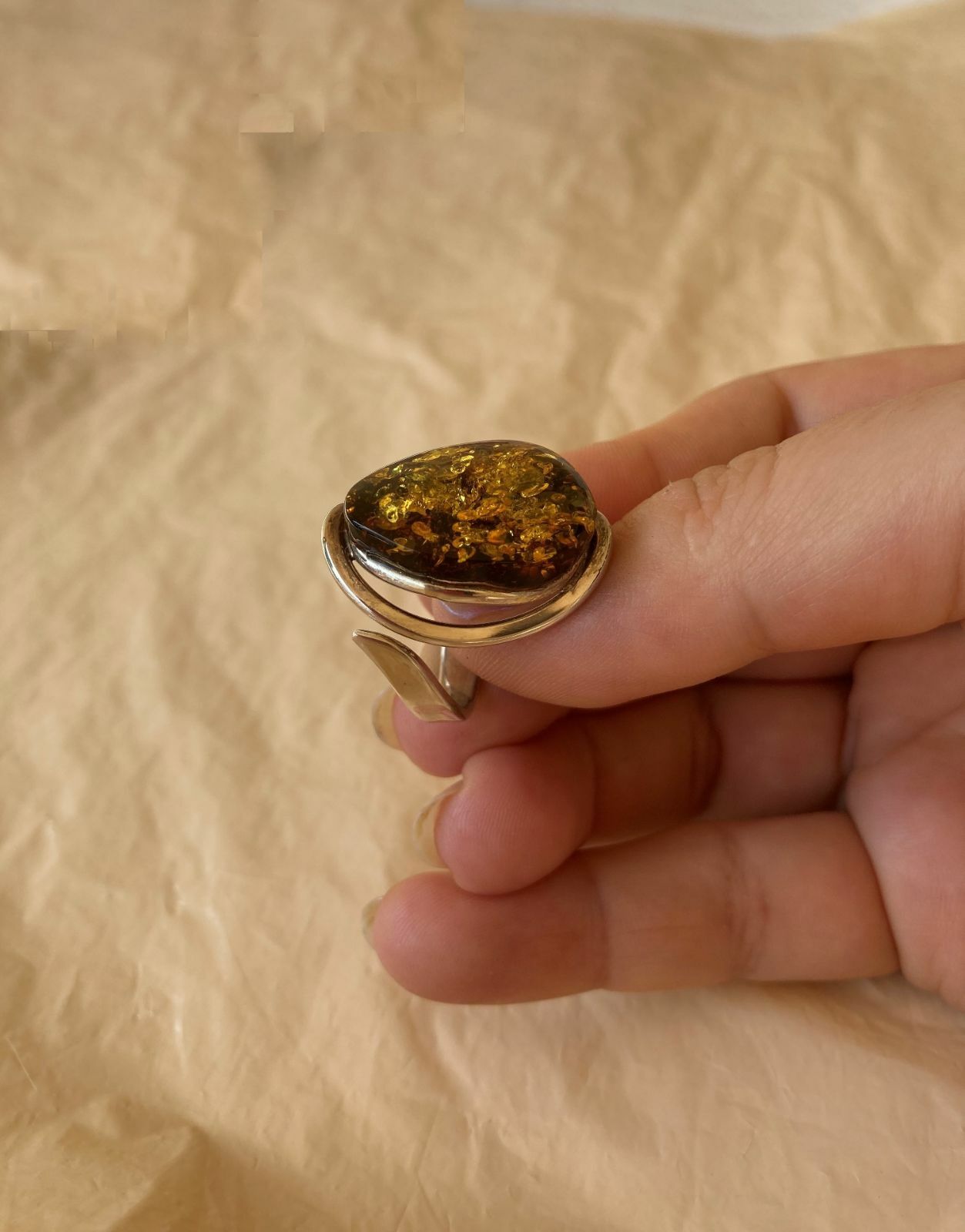 как выглядит BALTIC CHERRY MULTICOLOR or BUTTERSCOTCH AMBER SILVER MODERN HANDMADE RING фото