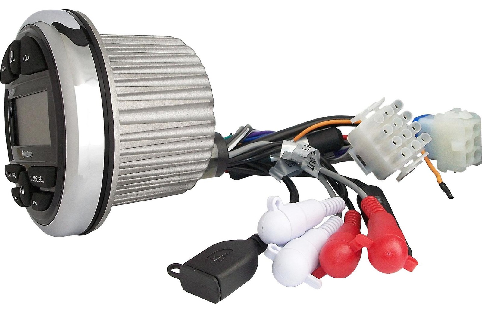 Особенности: AM/FM Radio, USB Input, Bluetooth Ready, Auxiliary Input, Waterproof, Rustproof, Single DIN, Remote Control, LED