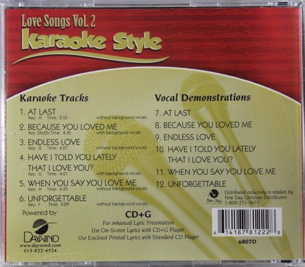 Love Songs Volume 2 Karaoke Style NEW CD G Daywind 6 Songs