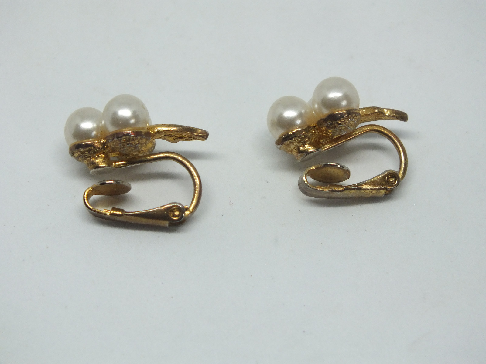 как выглядит Beautiful Clip Earrings Gold Tone Faux Pearl Trio 3/4 Inch CUTE фото