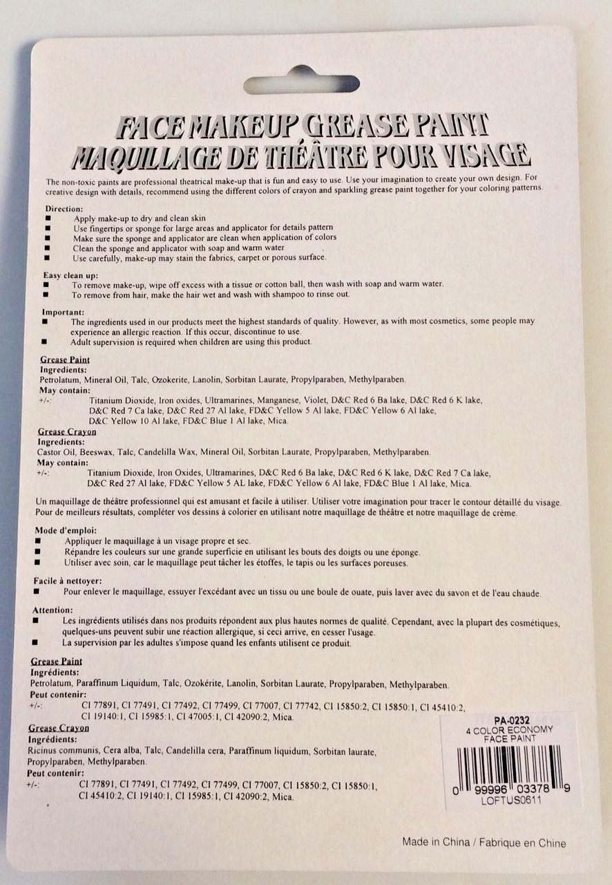 4 COLOR CLOWN FACE MAKEUP KIT Paint Set Costume Halloween Red Blue Yellow Green