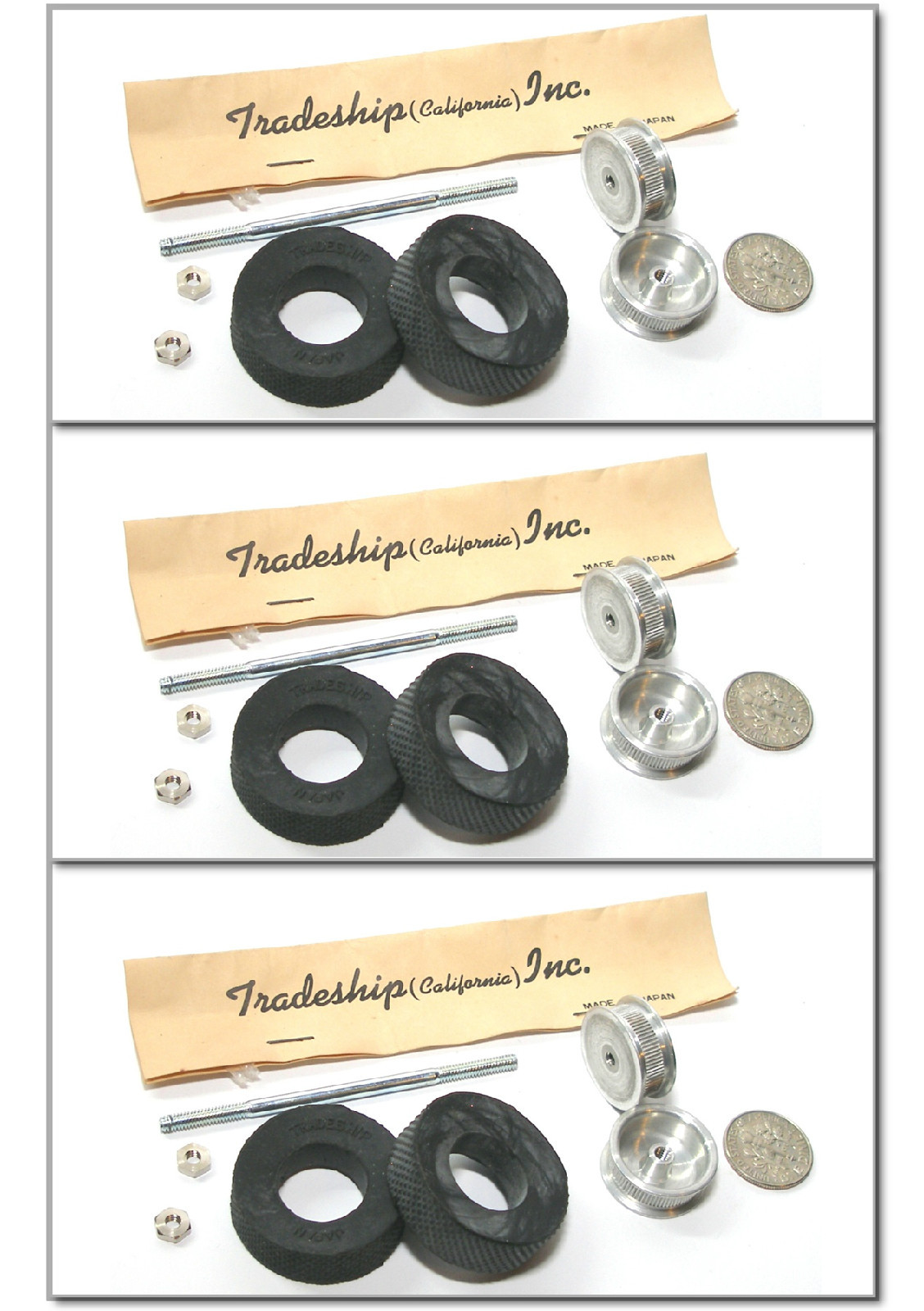 как выглядит 3pc TRADESHIP 1/24 Slot Car 1/8"x2 3/4" Axle 5/40 ALUMINUM WHEELS AL-5 TIRES A фото