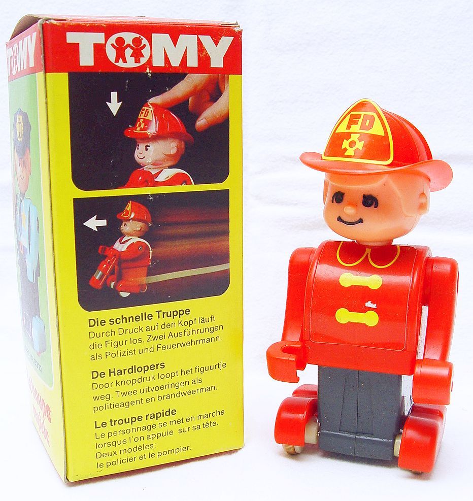 Tomy Singapore PUSH N GO FIRE FIGHTER Friction 16cm Character Figure Set MIB 77
