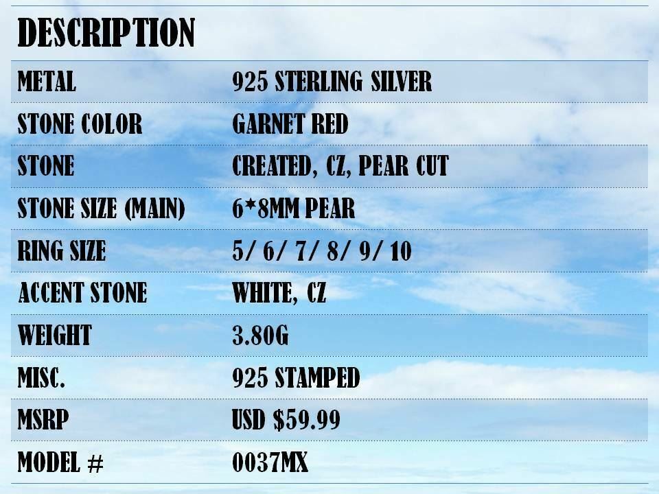 UNIQUE 1 CT PEAR GARNET RED 925 STERLING SILVER RING SIZE 5-10