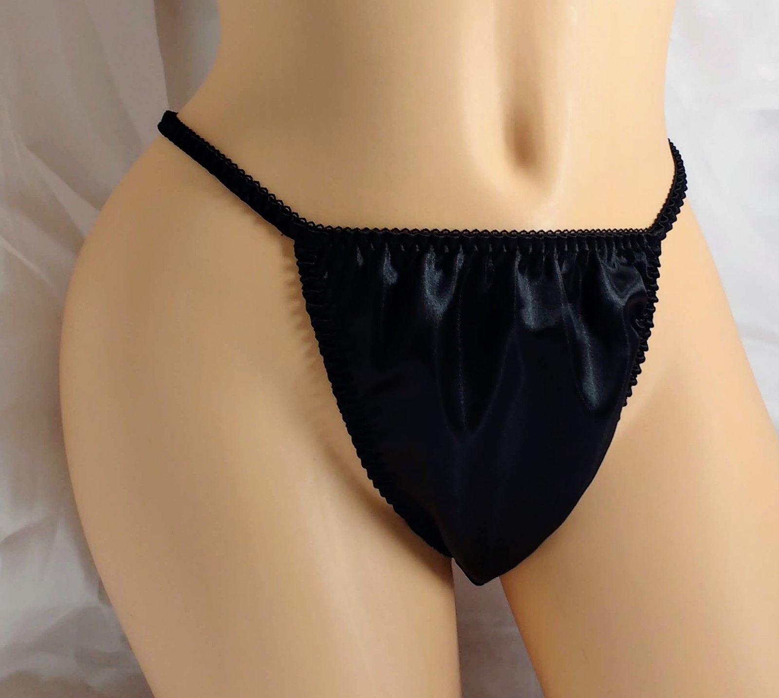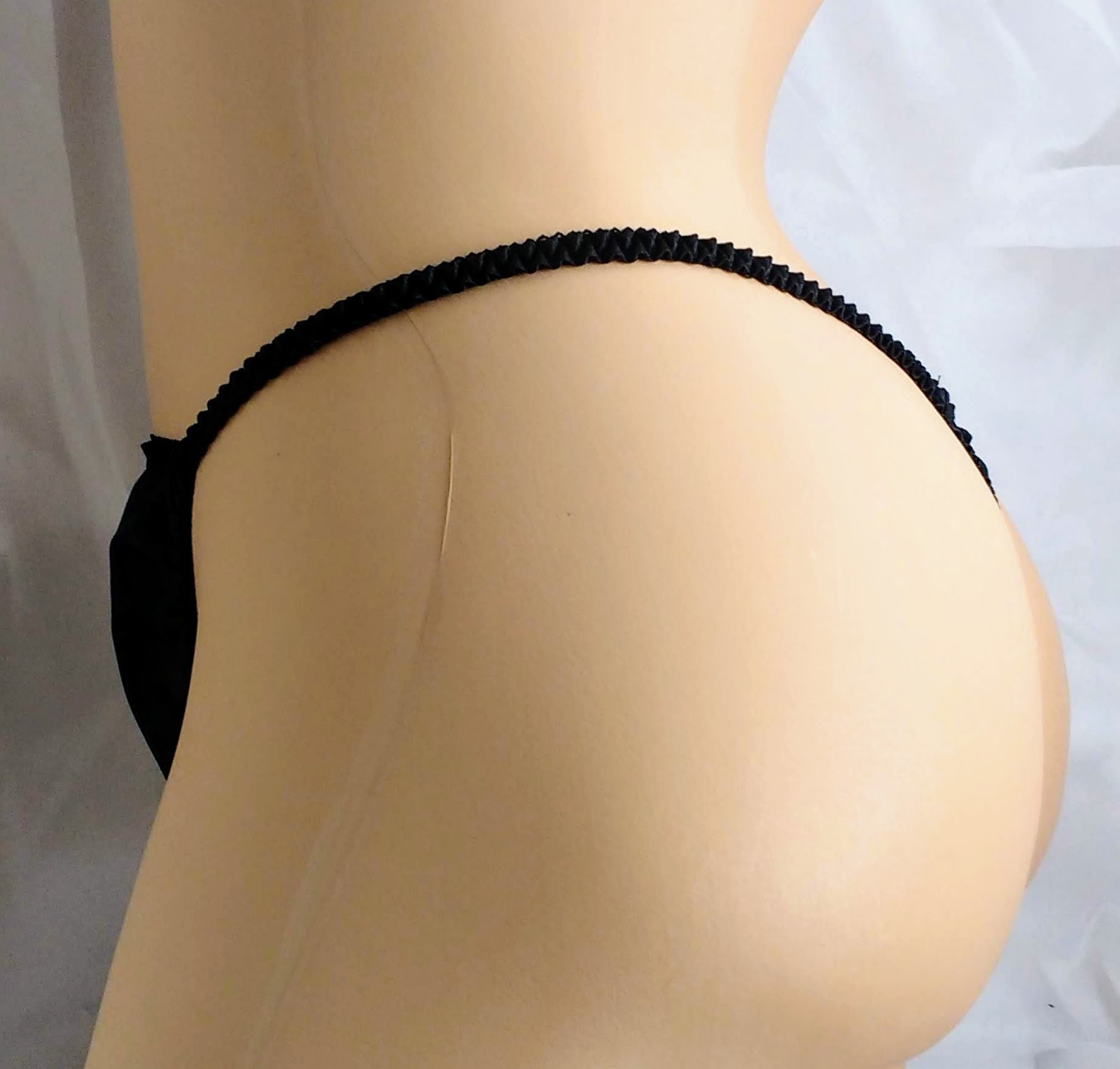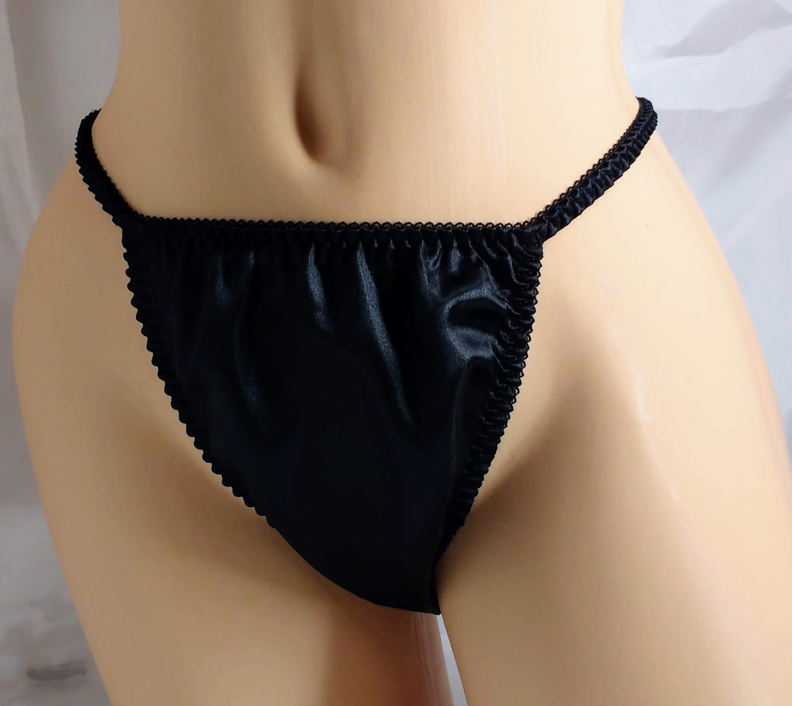 Black Satin Thong String Bikini panties.