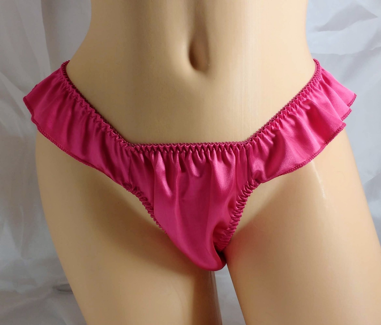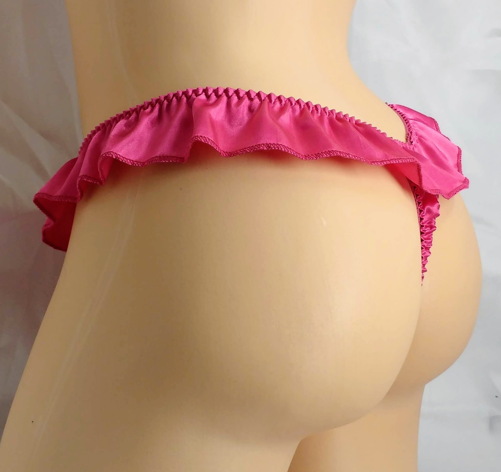 как выглядит Magenta Satin Flutter Thong panties VTG style. фото