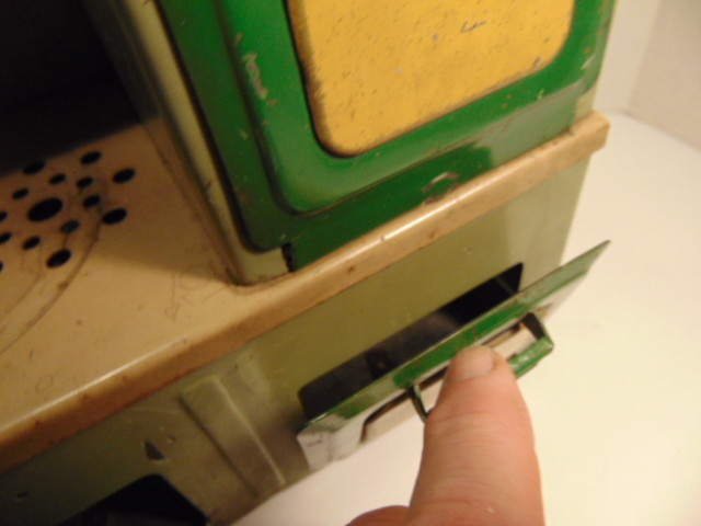Vintage toy green and tan colored metal stove