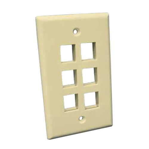 2 Pack Lot - Keystone 6 Hole Port Jack Wall Face Plate Network CAT5e CAT6 Ivory