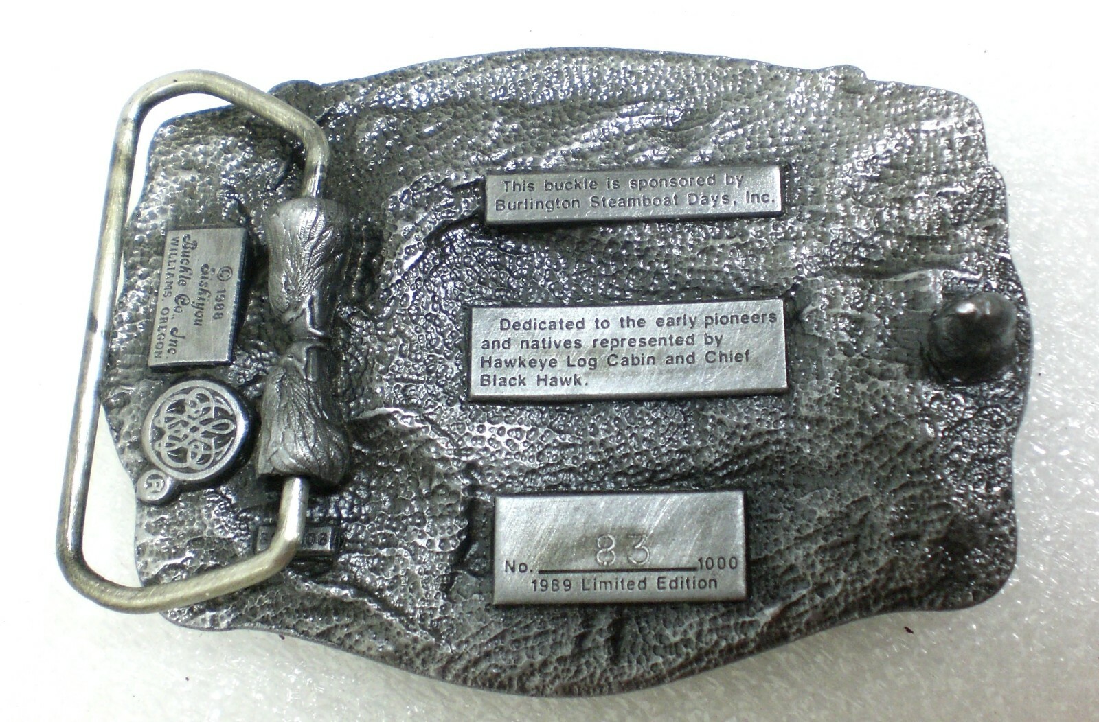 как выглядит 1989 Steamboat Days Burlington Iowa Crapo Park Pewter Belt Buckle  83/1000 фото