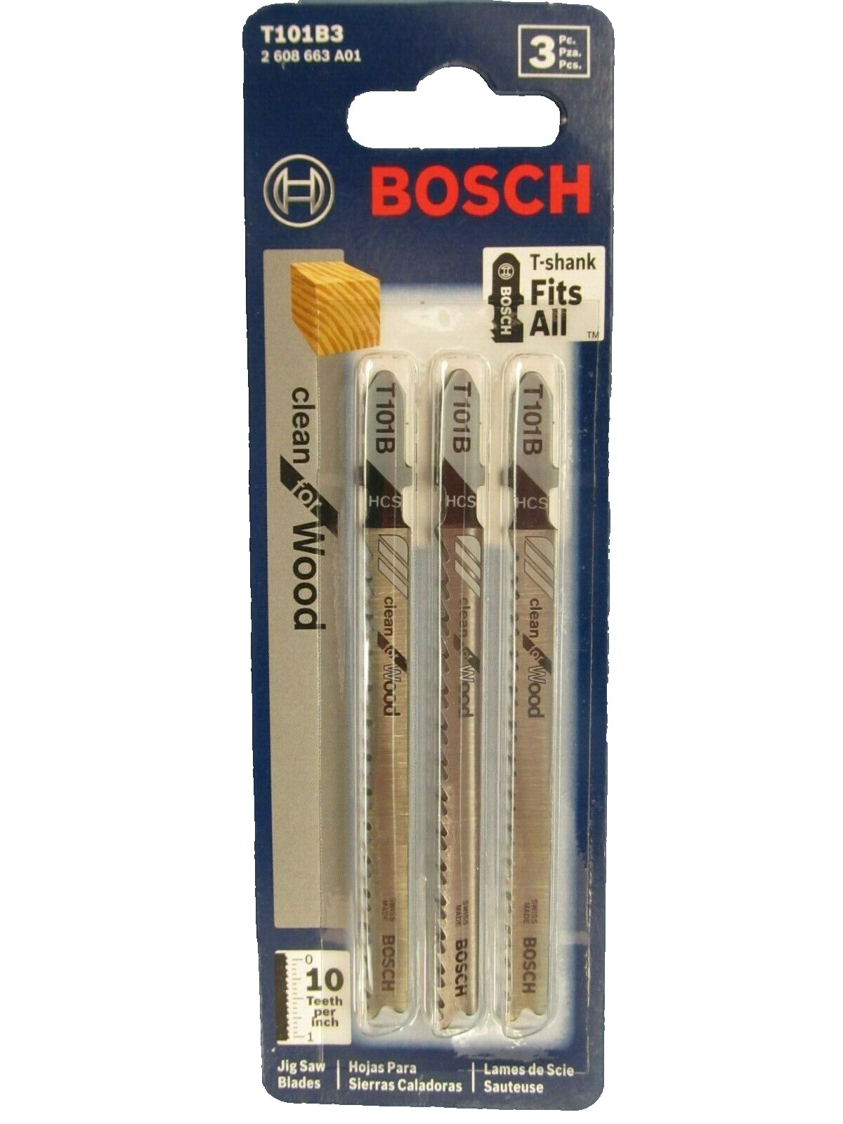 6 blades of Bosch T101B3 4 10 TPI Clean Wood Cutting T-Shank Jig Saw Blades NEW