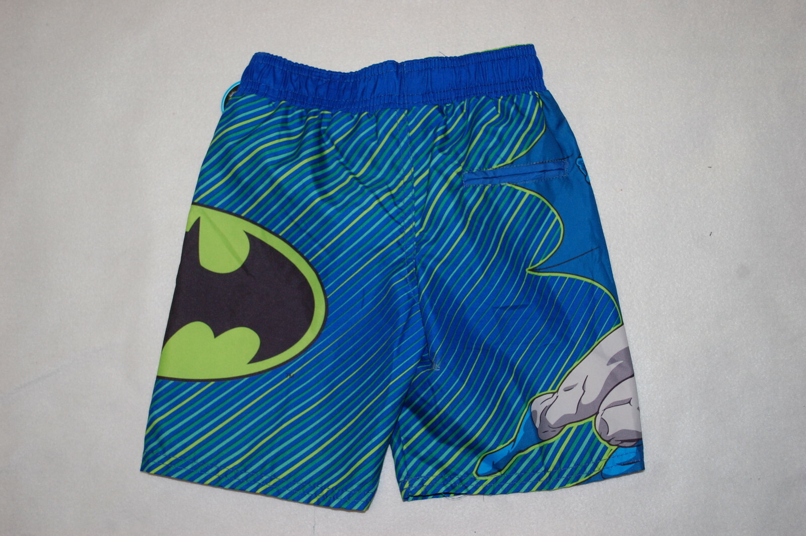 Boys Swim Trunks BATMAN Blue Green DIAG. STRIPES Rear Pocket SIZE 4