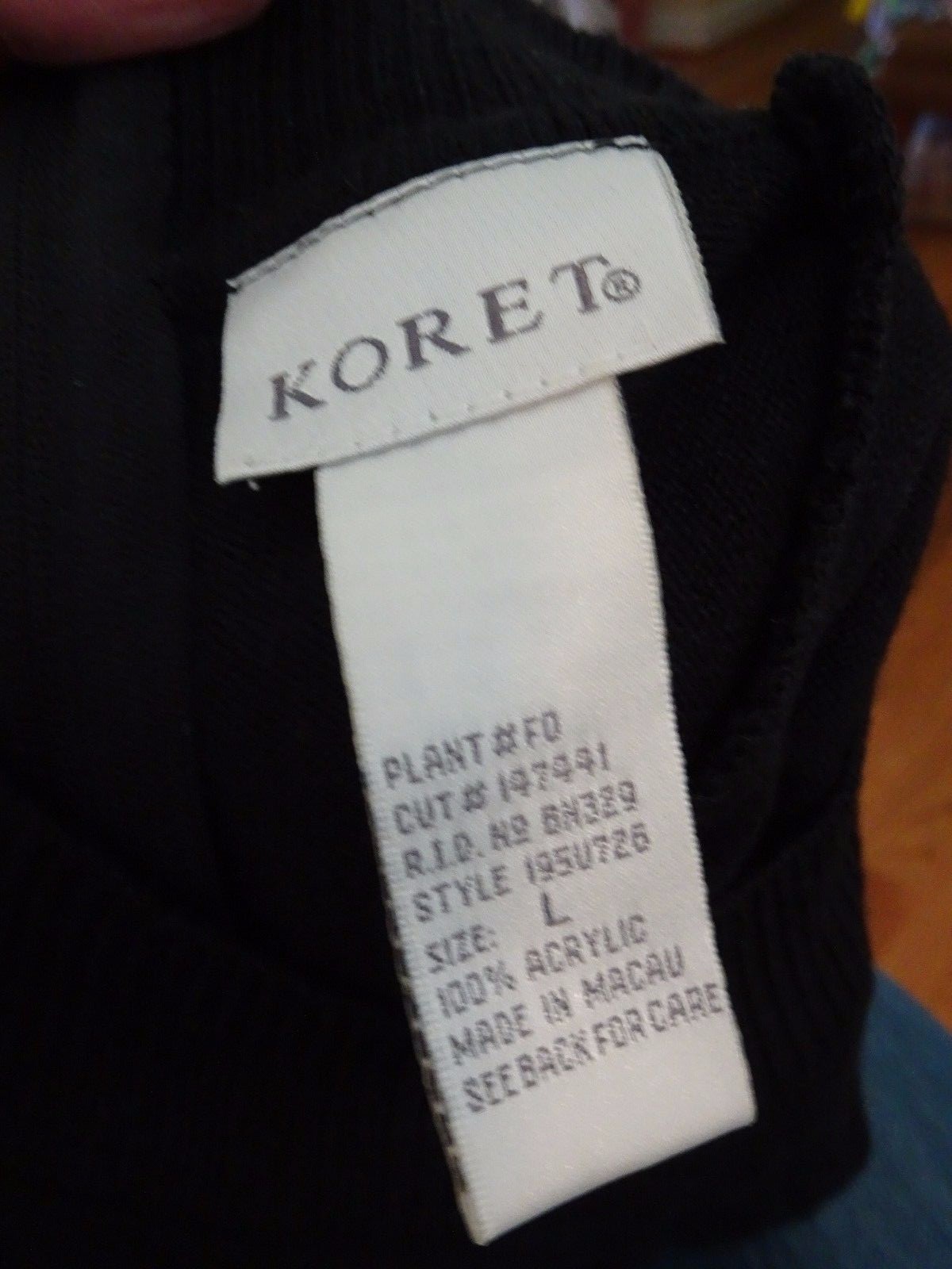 как выглядит KORET LADIES SIZE LARGE BLACK ACRYLIC SS SWEATER-MOCK TURTLENECKBACK ZIPPER-LKN фото