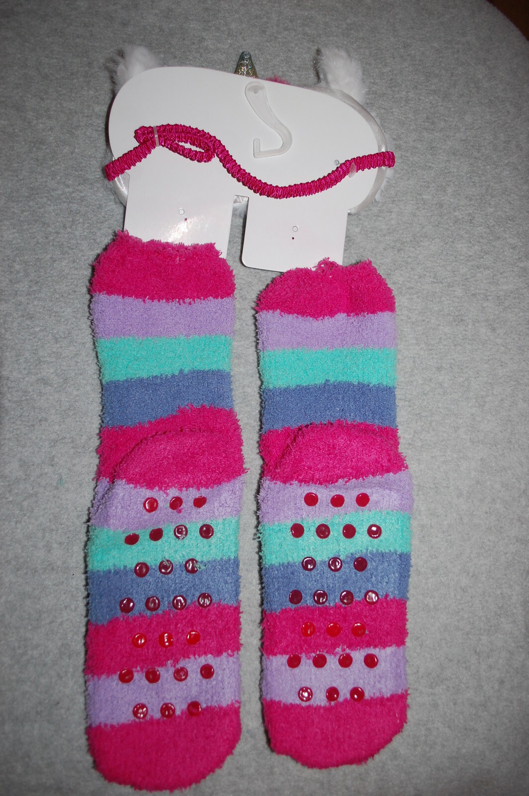 как выглядит Sleep Eye Mask Fuzzy Cozy House Socks UNICORN w/ GLITTER HORN Rainbow Stripe фото