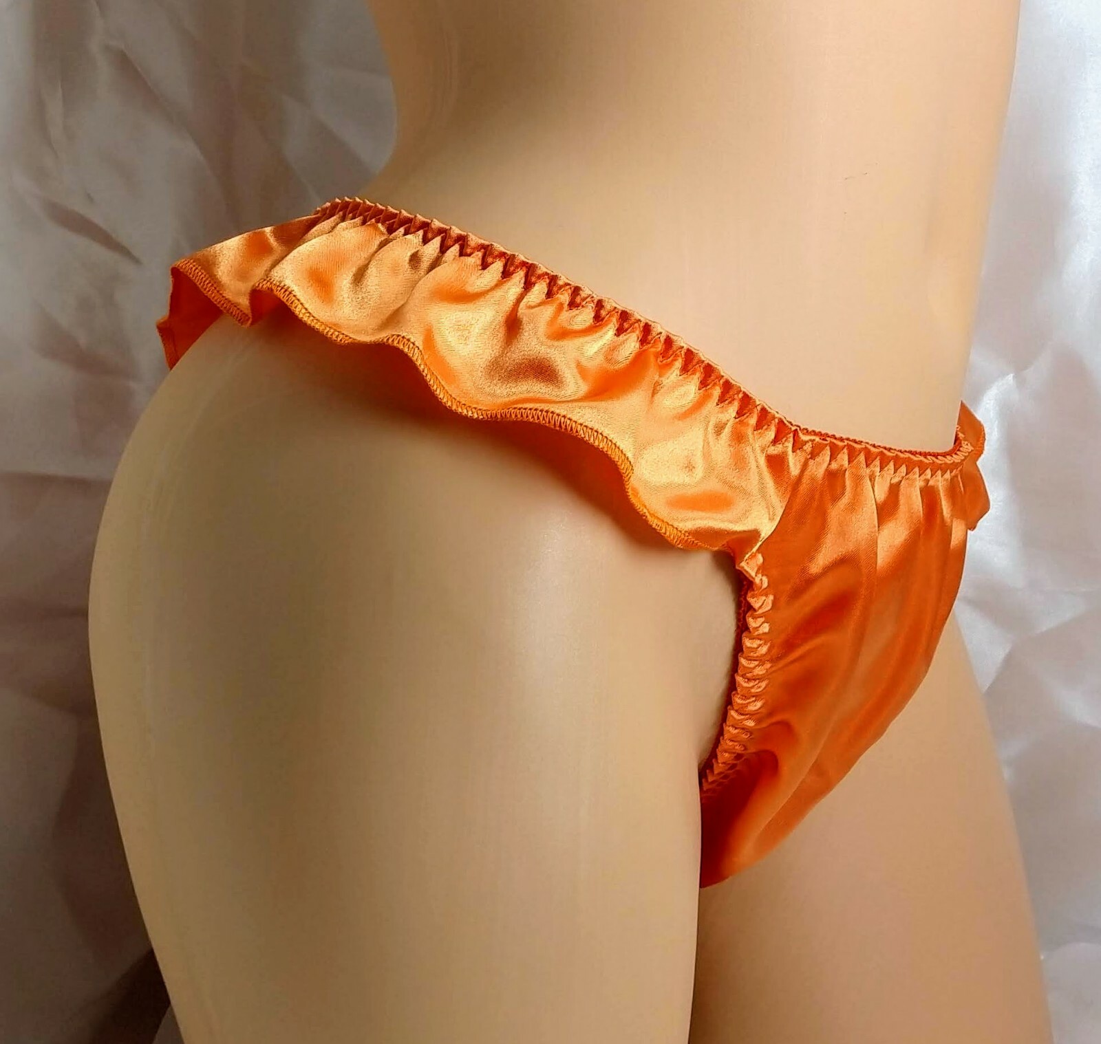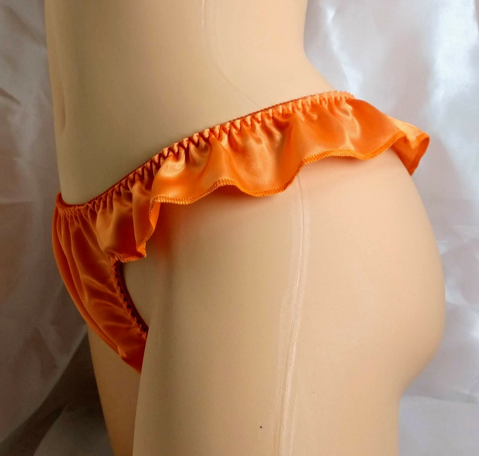 как выглядит Orange Satin Flutter Thong panties VTG style. фото