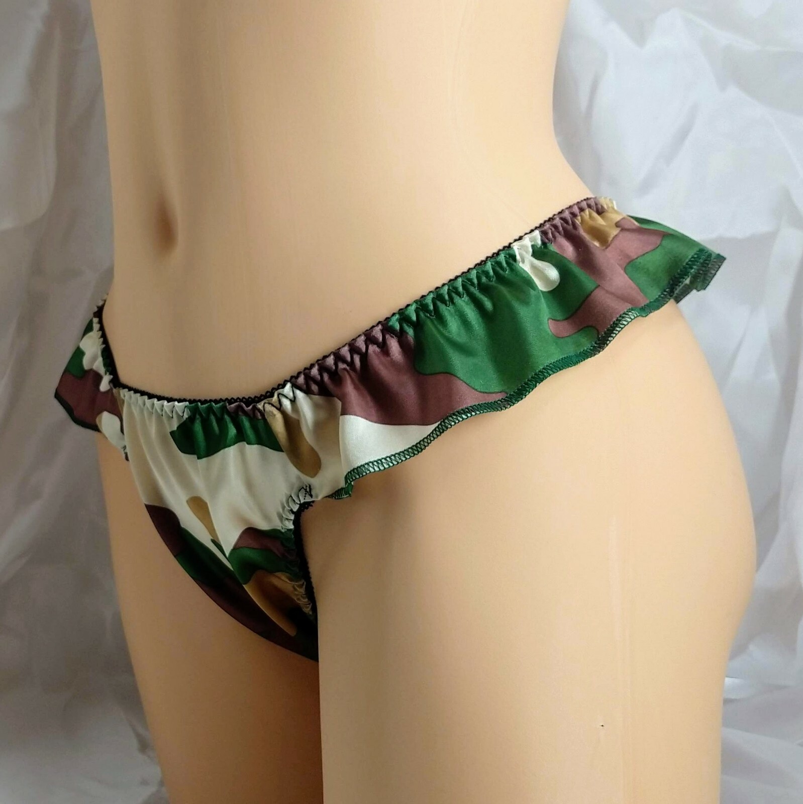 Green Camouflage Satin Flutter Thong panties VTG style.