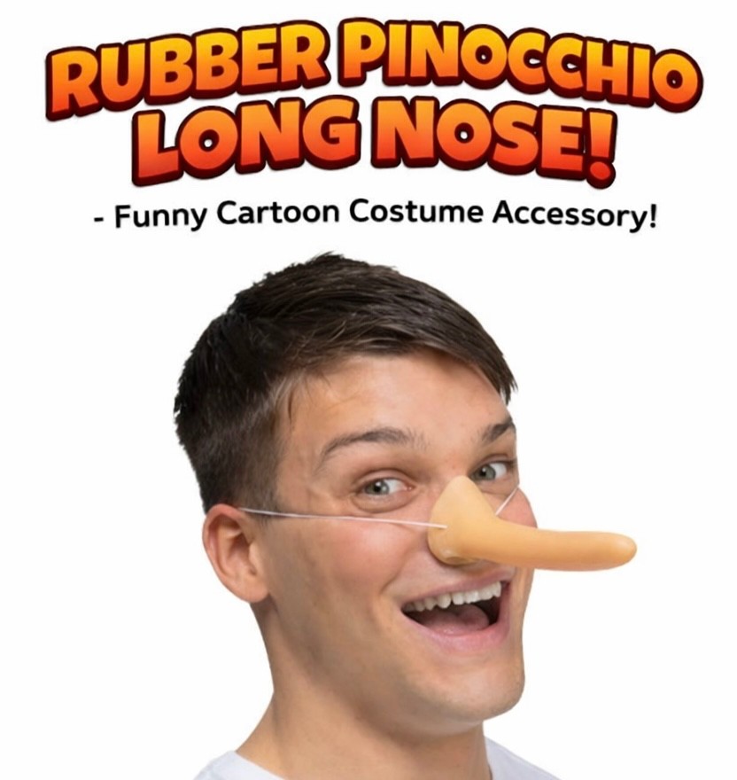 RUBBER PINOCCHIO LONG NOSE Flesh Cartoon Clown Funny Costume Puppet Mask Cyrano