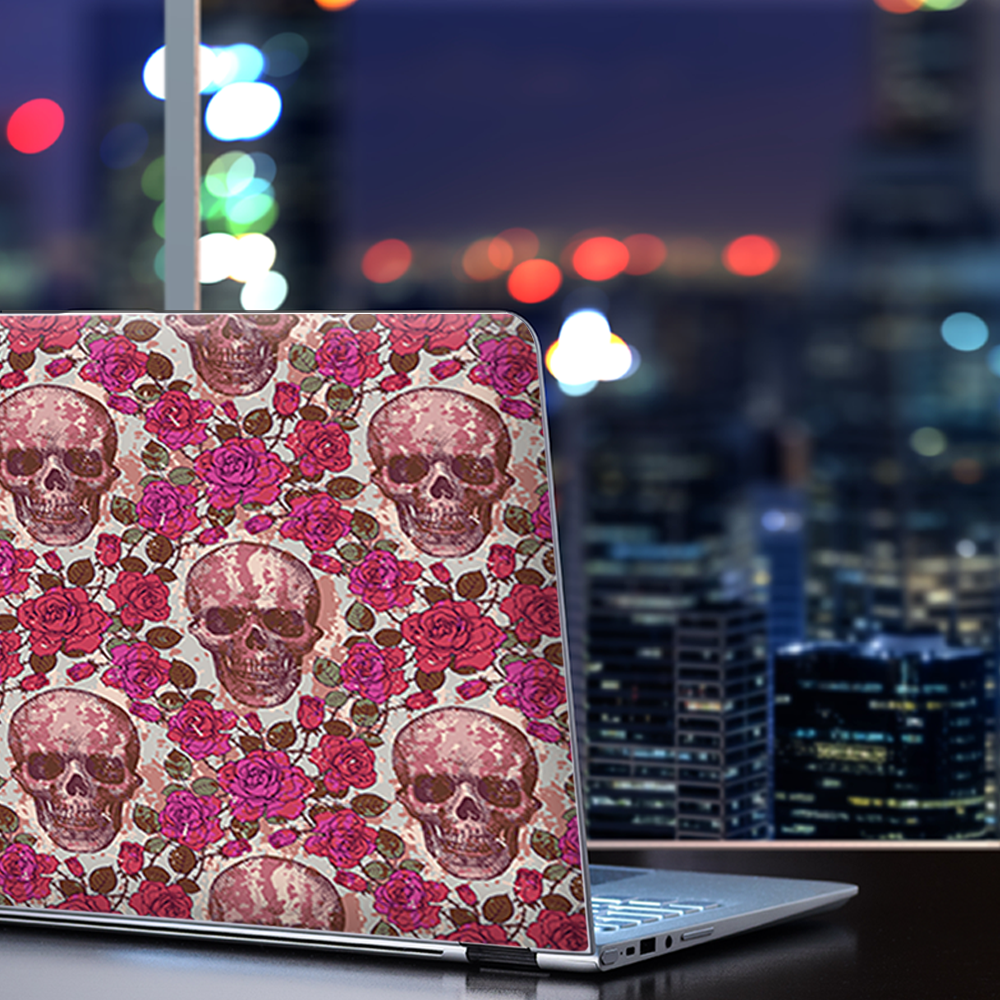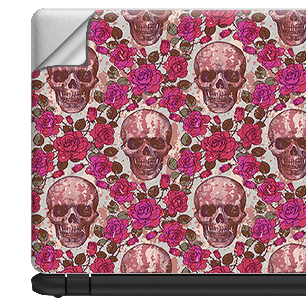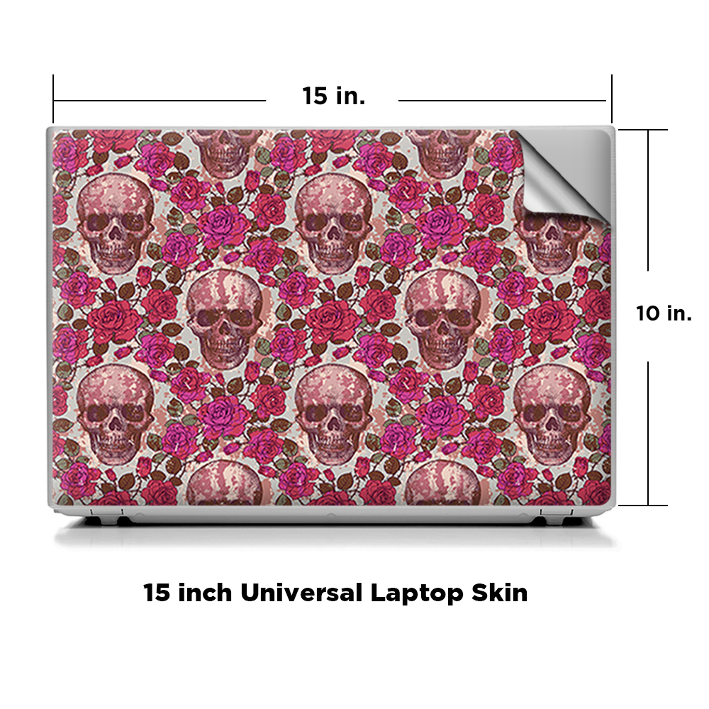 Universal Laptop Skins wrap for 15 - pink roses with skulls distressed