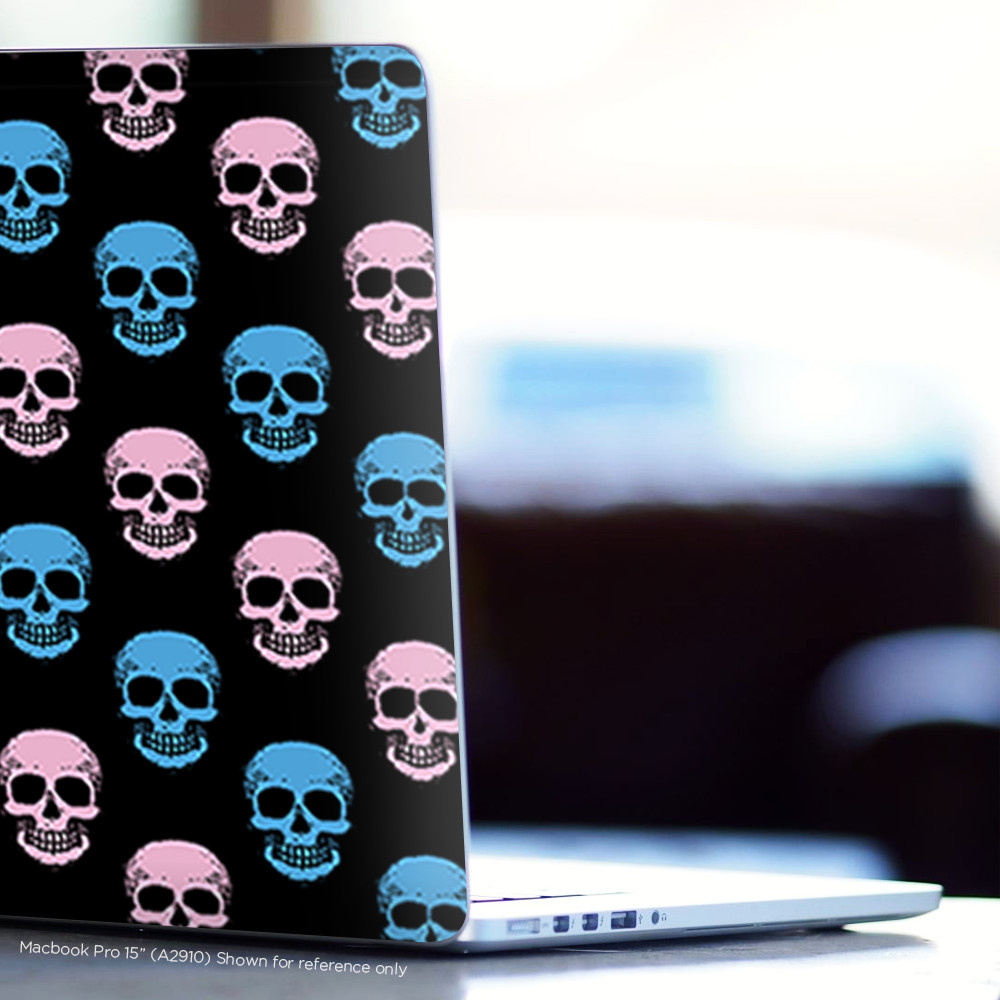 Skin Wrap for Macbook Air 11 Inch, pink blue skulls black background