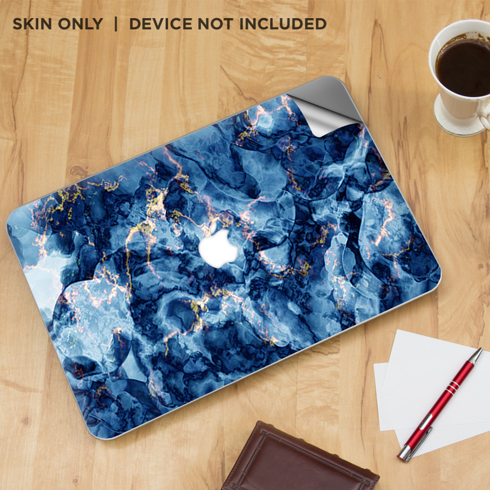 как выглядит Skin Decals Wrap for MacBook Pro Retina 13" - Heavy Blue Gold Marble Granite фото